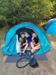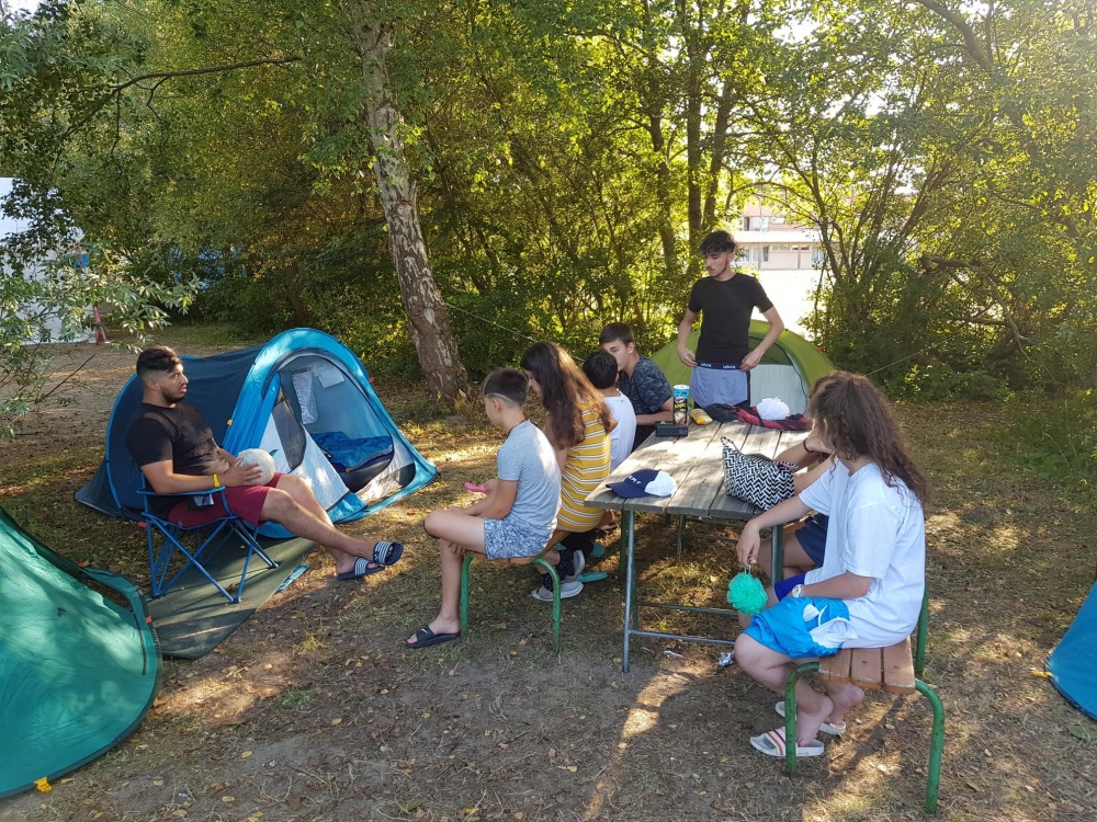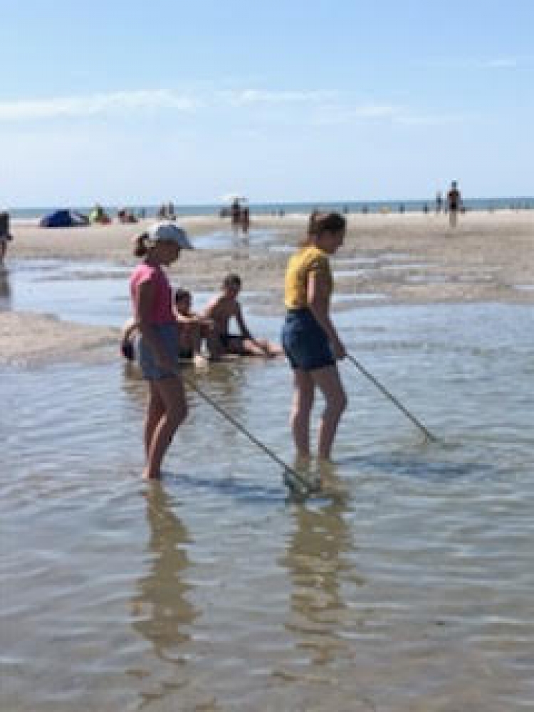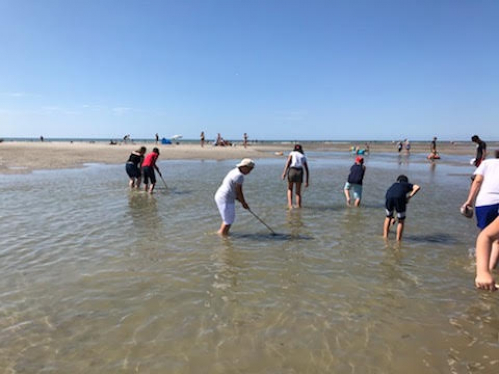Arrivés vers 11h, ils n'ont pas perdu de temps pour installer leur tente et ranger leurs affaires avant d'aller s'initier à la pêche à pied avec épuisette au bord de la plage. Certains ont d'ailleurs réalisé de très belles prises de crustacés !