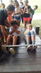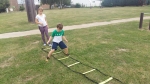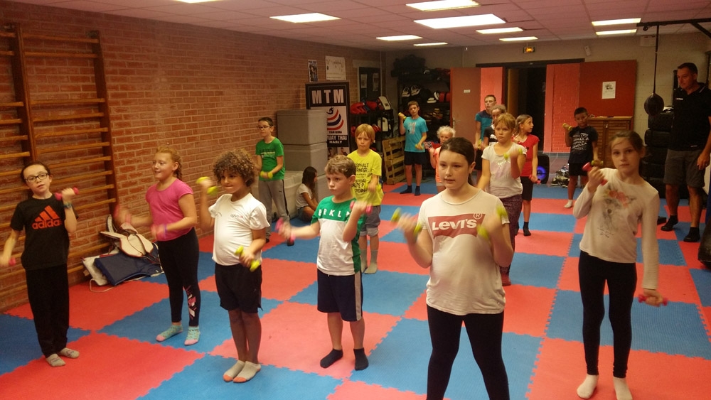 Après avoir effectué un échauffement des articulations avec des mouvements posturaux et des poids légers dans la salle du muay taï à Aragon, les éducateurs sportifs avaient concocté huit ateliers à l'extérieur pour nos jeunes sportifs ! Ils ont du sauter, ramper, soulever, lancer...