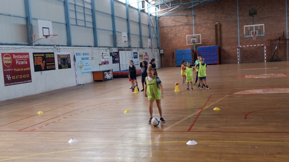 Atelier conduite de balle sous forme de parcours relais, passes par un tir de précision sur cible, attaque/défense pour apprendre le démarquage. Après avoir suivi et appliqué tous ces conseils, les jeunes ont pu se rencontrer sur des matchs de 4 contre 4 et appliquer un jeu beaucoup plus technique qu'auparavant. De futurs champions en devenir !