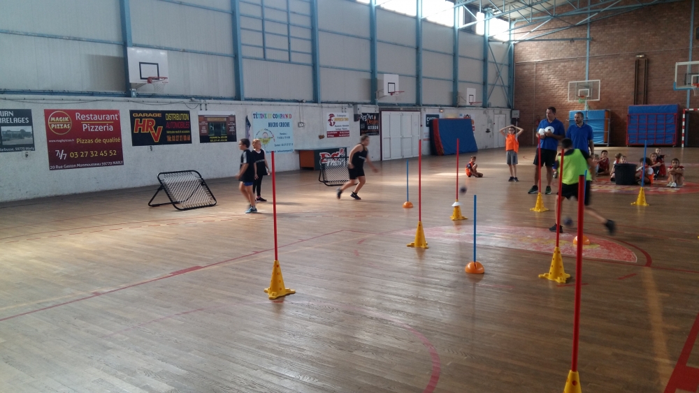 Différents ateliers ludiques ont été mis en place par les éducateurs sportifs pour permettre aux enfants de découvrir les stratégies à appliquer pour marquer le plus de points possible.