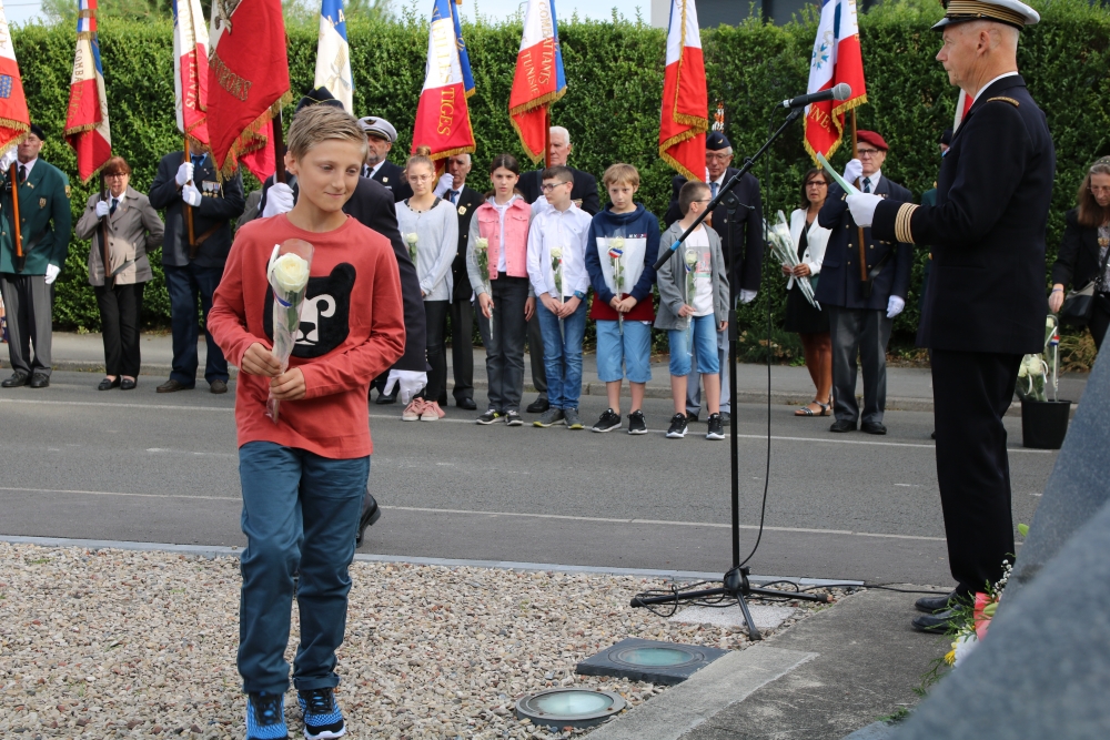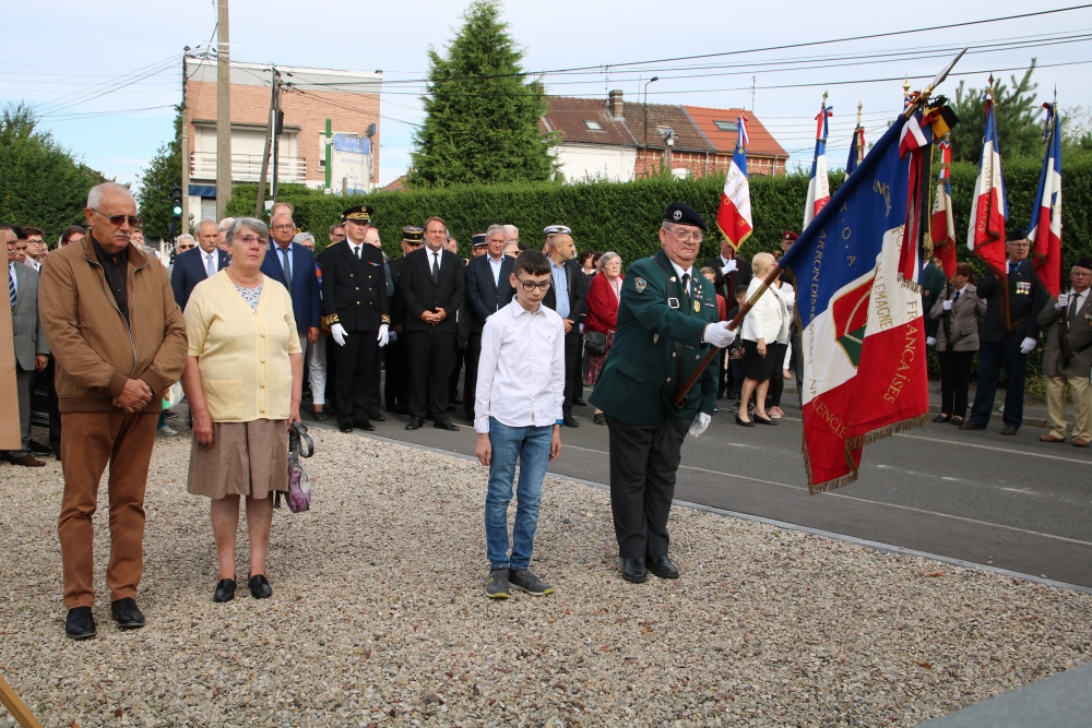 Devant le Monument de la Croix du Rôleur, en présence des autorités civiles, miitaires, d'anciens combattants, d'élus du Conseil municipal de Marly et de Valenciennes et de de Monsieur le Sous-Préfet, un hommage tout particulier a été rendu par de jeunes enfants aux 21 résistants fusillés par les nazis à la veille de la Libération.