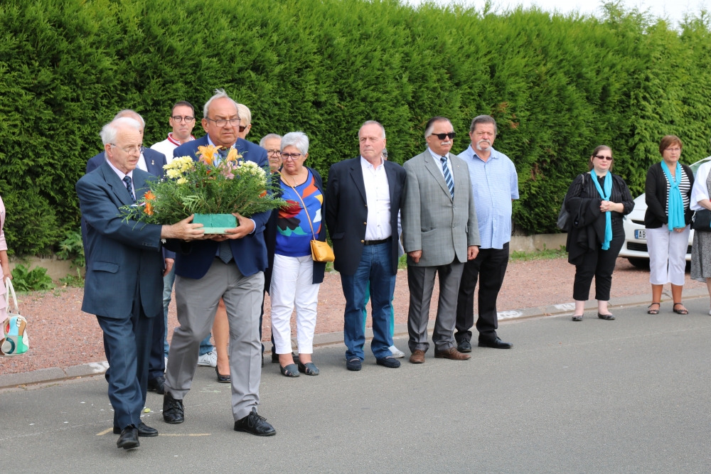 Des gerbes de fleurs ont ensuité été deposées par le Premier Magistrat et M. Pierre Barbier (trésorier de l'association CATM).