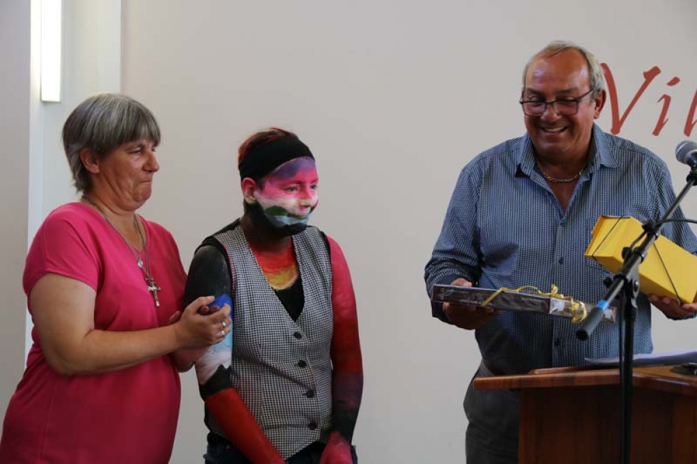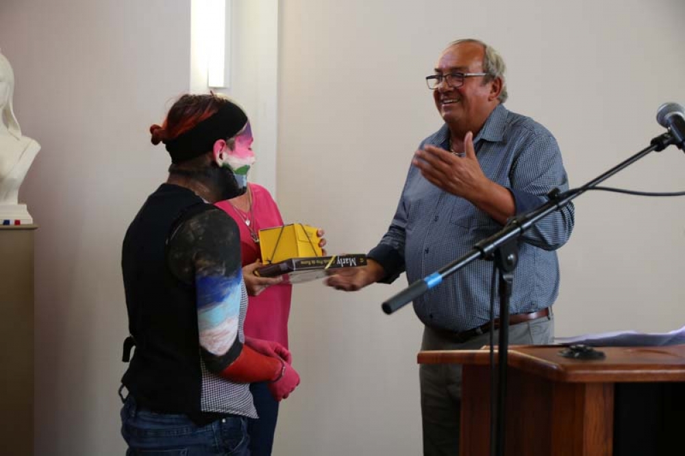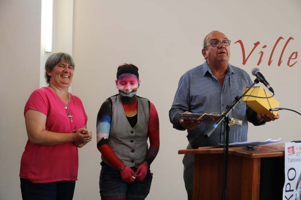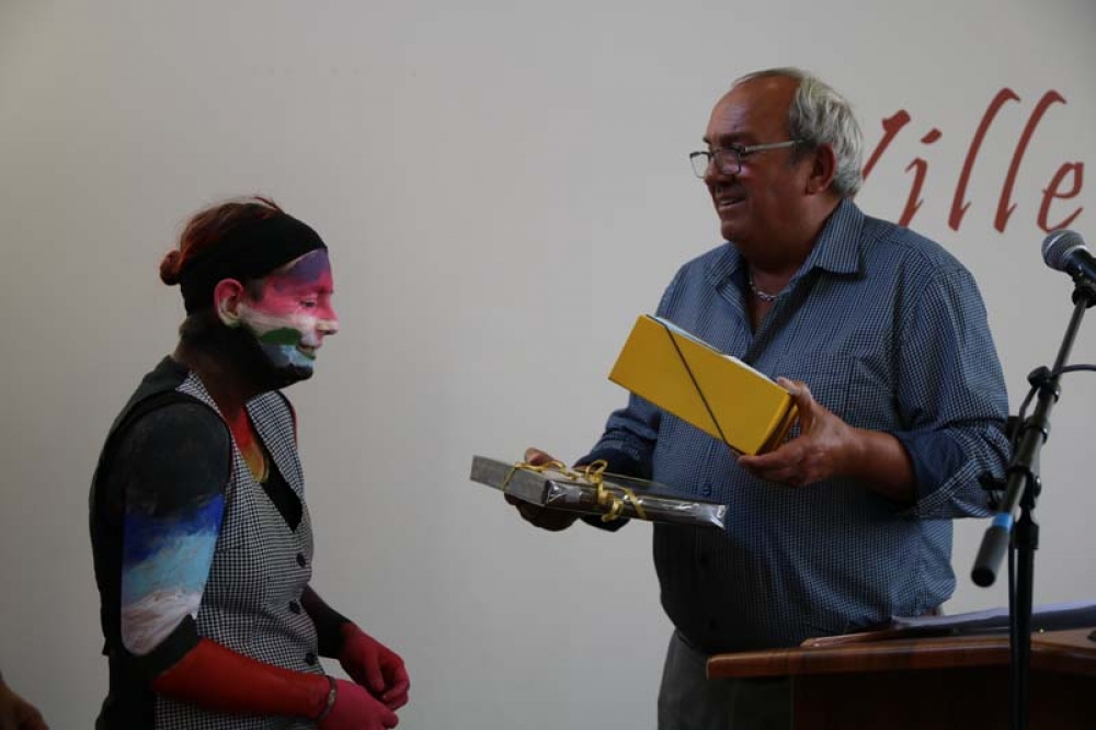 Monsieur le Maire remit ensuite un cadeau de la part de la Ville à l'artiste très émue de tant d'ovation.