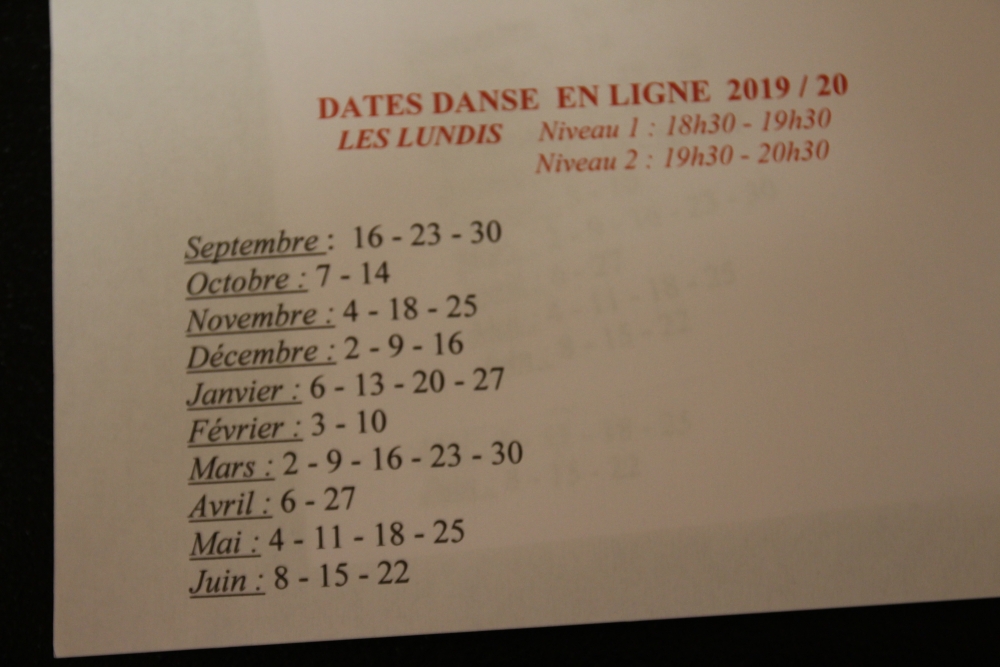 La danse en ligne (chorégraphies sur des musiques modernes et actuelles) qui a lieu le lundi :