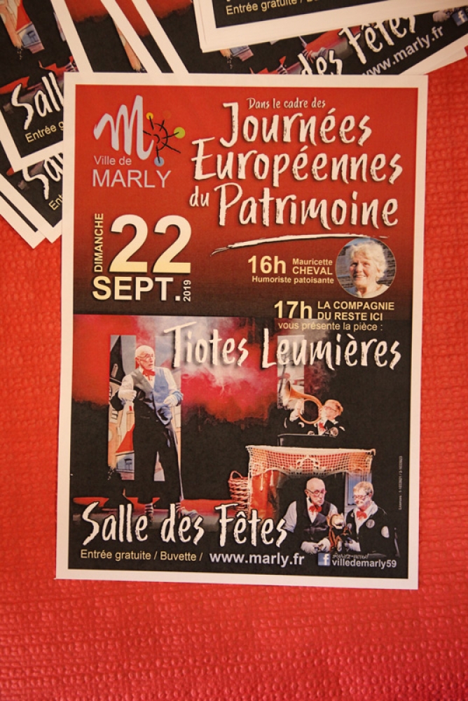 Ce dimanche 22 septembre, à la salle des fêtes de Marly, M. Le Maire et les membres du Conseil municipal ont reçu Mauricette Cheval avec ses aventures ch’timi et la Compagnie du Reste ici avec sa représentation " Tiotes leumières ".