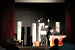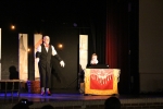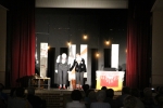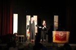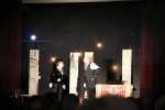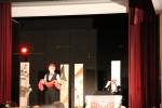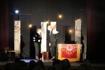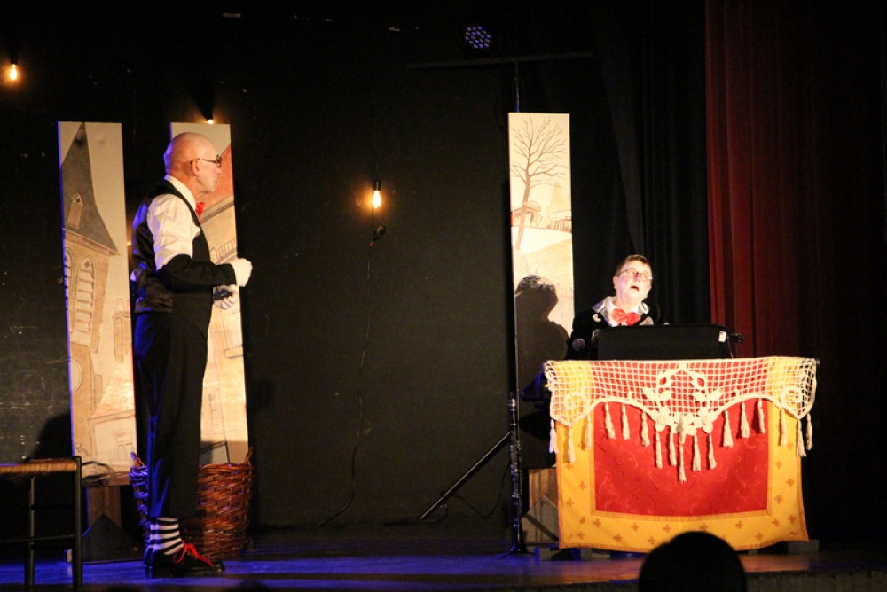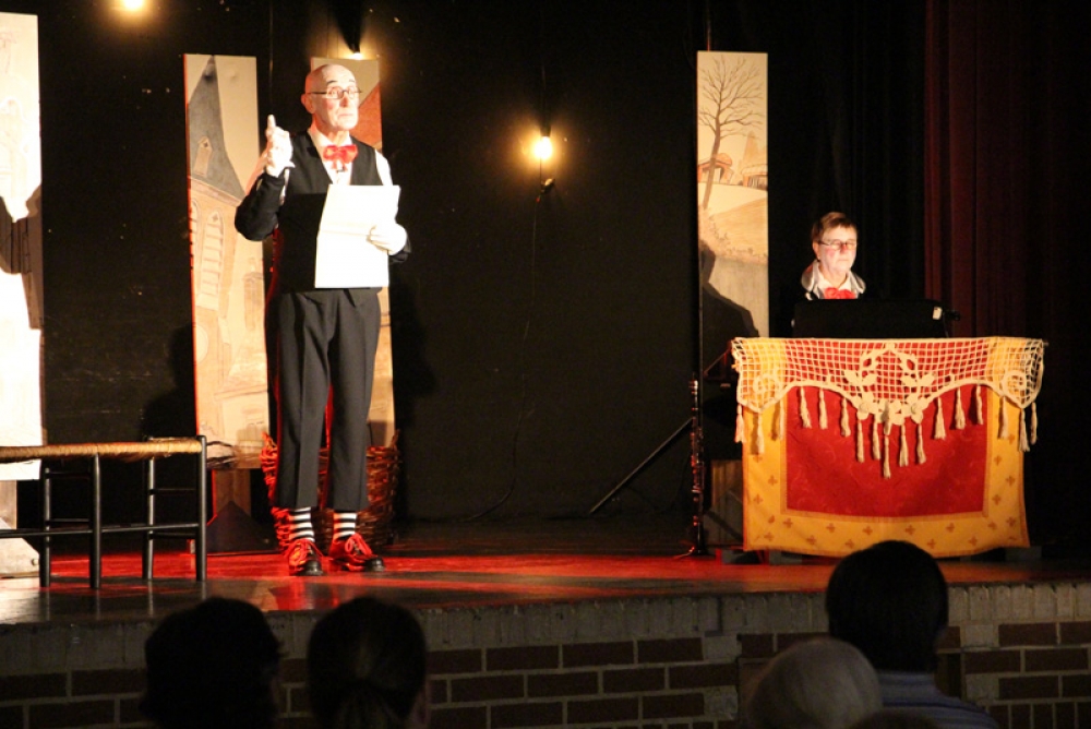 Après « l’entracte » avec boissons, tartes à chuque, tartes au libouli et gauffres, le spectable " Tiotes leumières " de la " Compagnie du Reste ici " a pu commencer. Avec leur humour décalé, absurde et parfois corrosif, Criquette et Grind Jacquot portent un regard tendre et complice sur quelques artistes de l’ombre, ces lueurs cachées, minuscules pépites méconnues, oubliées, trop souvent dédaignées. Nos deux conteurs s’enflamment pour les mettre en lumière, le temps d’une étincelle, dans cette langue picarde qui ne doit pas s’éteindre ".