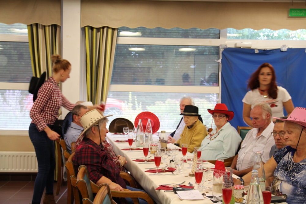 Dans une décoration western et avec les chapeaux de cow-boy, les résidents, en présence de leur famille et d’une large délégation d’élus du Conseil municipal, se sont réunis dans la grande salle à manger pour déguster un repas à l’américaine.