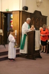 La pluie n'avait cependant pas ôté le sourire du visage des enfants, fiers de présenter leurs beaux cartables et leurs agendas devant l'Abbé Bertrand ESTIENNE, officiant aux côtés de l'Abbé Frédéric LOYEZ et des diacres Michel CHOMBART et Pierre-Marie VERHEGGE.