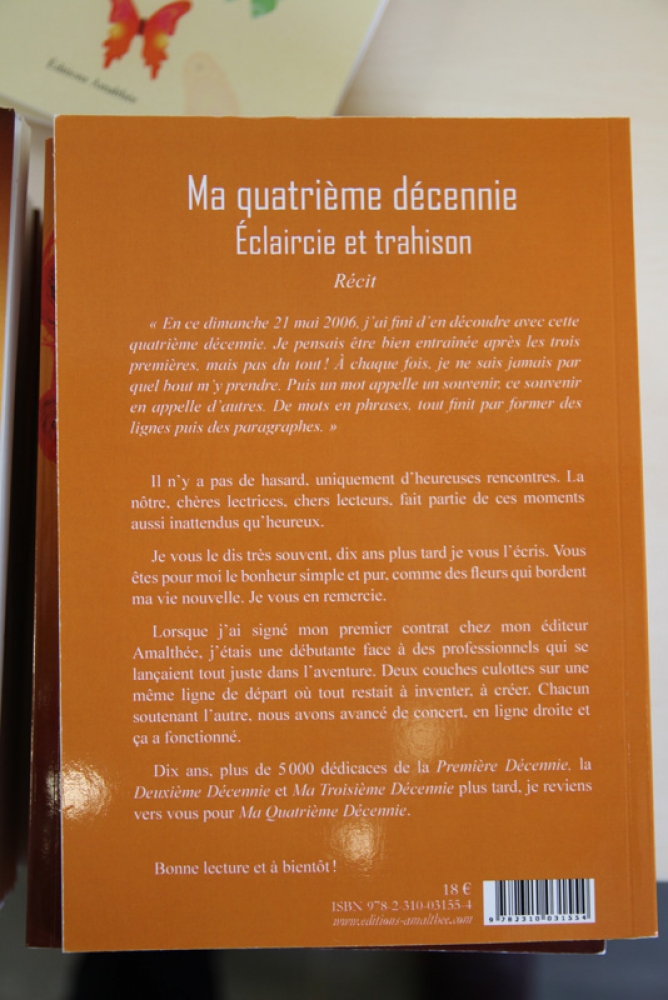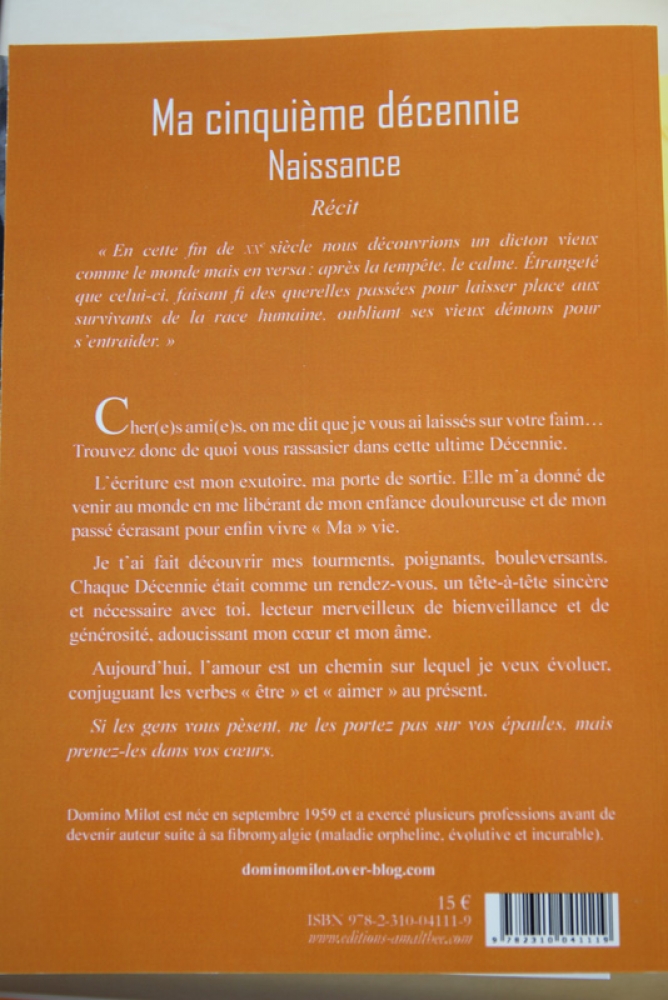 Ces cinq livres autobiographiques sont issus de l’enfance solitaire et difficile de l’auteur, rejetée par ses parents et ses familles d’accueil, mais aussi à la suite de l’apparition de la maladie, la fibromyalgie qui l’a broyée et qui ne lui a laissée que la tête et les mains fonctionner. Grâce à sa foi en la vie et son optimisme, son premier livre « Première décennie » voit le jour, écrit en un seul jet et publié à l’état brut. Rencontrant un réel succès et à la demande du public, la « Deuxième décennie » a suivi. Ainsi commence la passion de l’écriture jusqu’au dernier livre sans oublier les recueils grâce auxquels elle a décroché le prix « Raymond Queneau » au 17ème concours littéraire international en 2019.