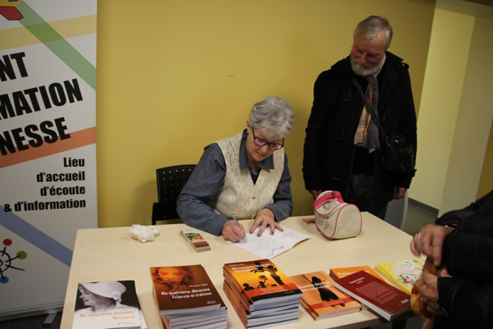 Ce samedi 19 octobre, exceptionnellement la Maison des associations a accueilli le nouveau rendez-vous du Café Littéraire organisé par l’association ACCES en partenariat avec la Bibliothèque de l’Amicale laïque de Marly. Lucie Pétrone a animé cette rencontre autour de l'écrivain Domino Milot, auteur de « Première décennie : survivre » et de quatre autres « décennies »… Ecrire pour vivre.