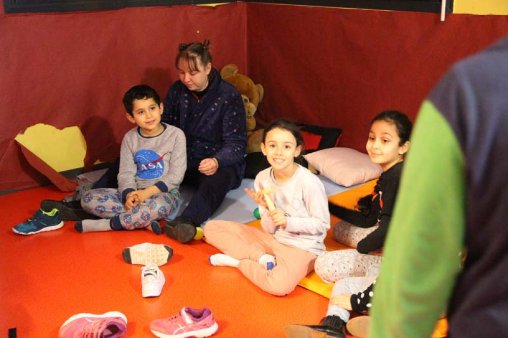 Après une café-partage avec les parents et la conseillère Emmanuelle BOUGUERRA, tout le monde a revêtu son plus beau pyjama pour décompresser au maximum avec des ateliers massages, coiffures, lecture de contes, karaoké et repos !