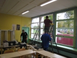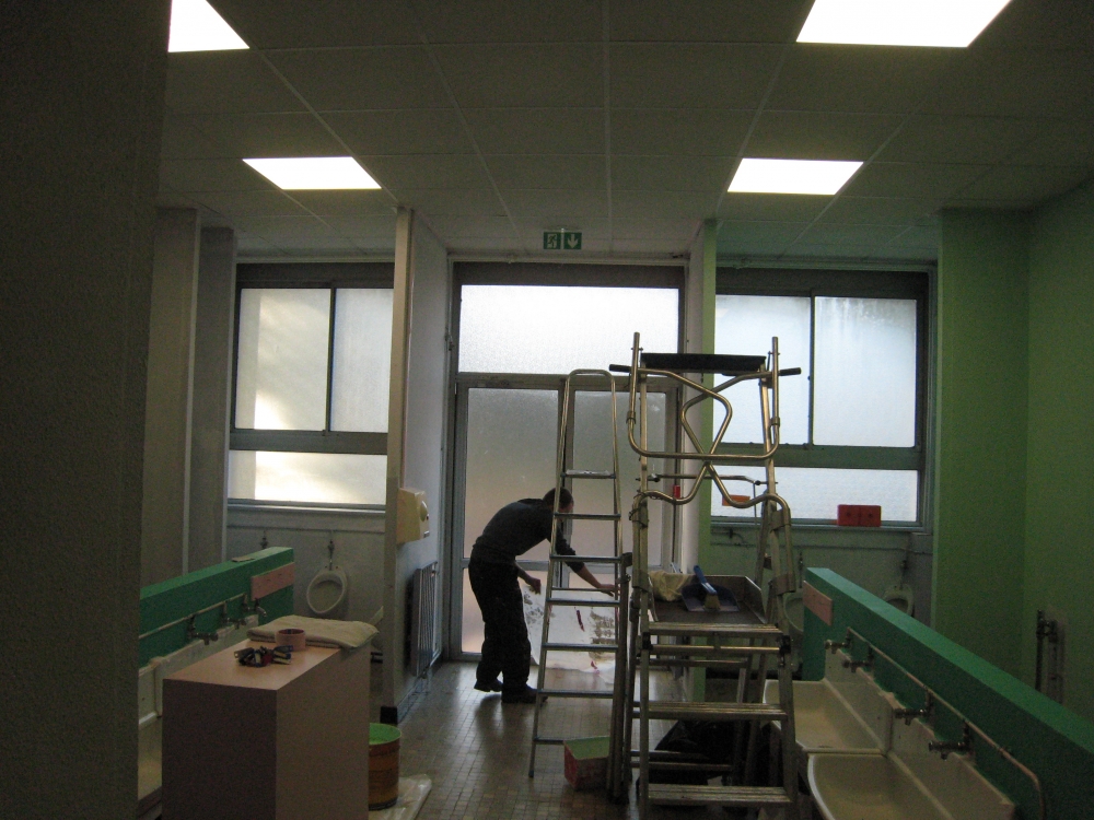 Ainsi, tout dernièrement, à l'école maternelle Nelson Mandela, les servIces techniques de la Commune ont repeint les sanitaires dans différents tons de "vert" et de nouveaux châssis ont été posés dans deux classes de l'École élémentaire Louise Michel pour une meilleure isolation phonique et thermique. Après les fêtes de fin d'année, ce sera au tour des trois autres classes.