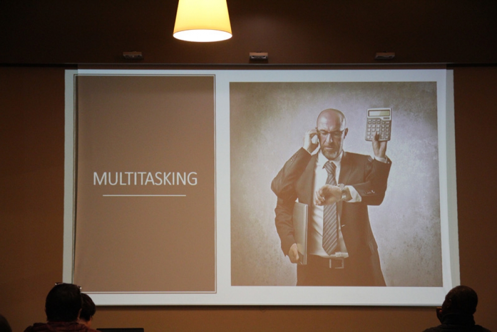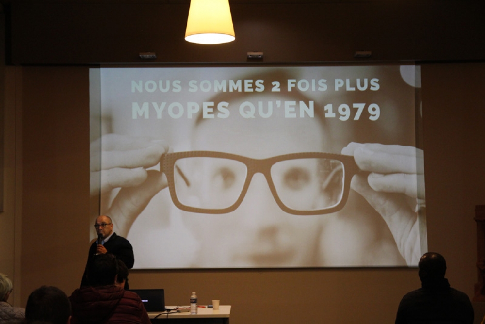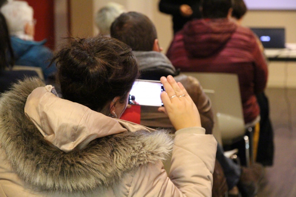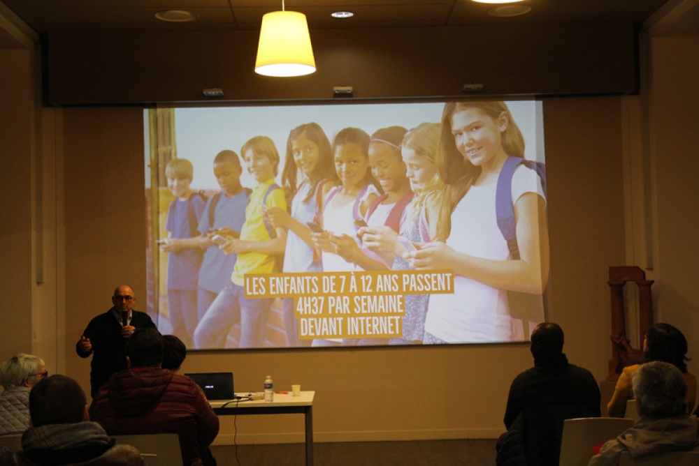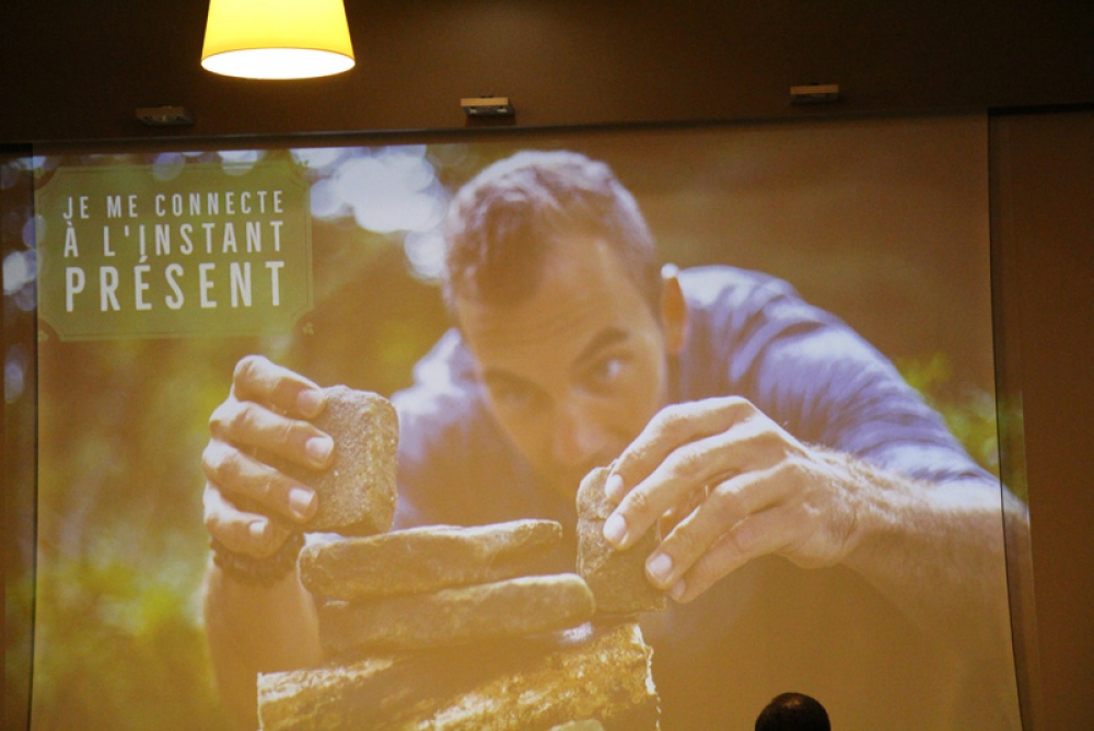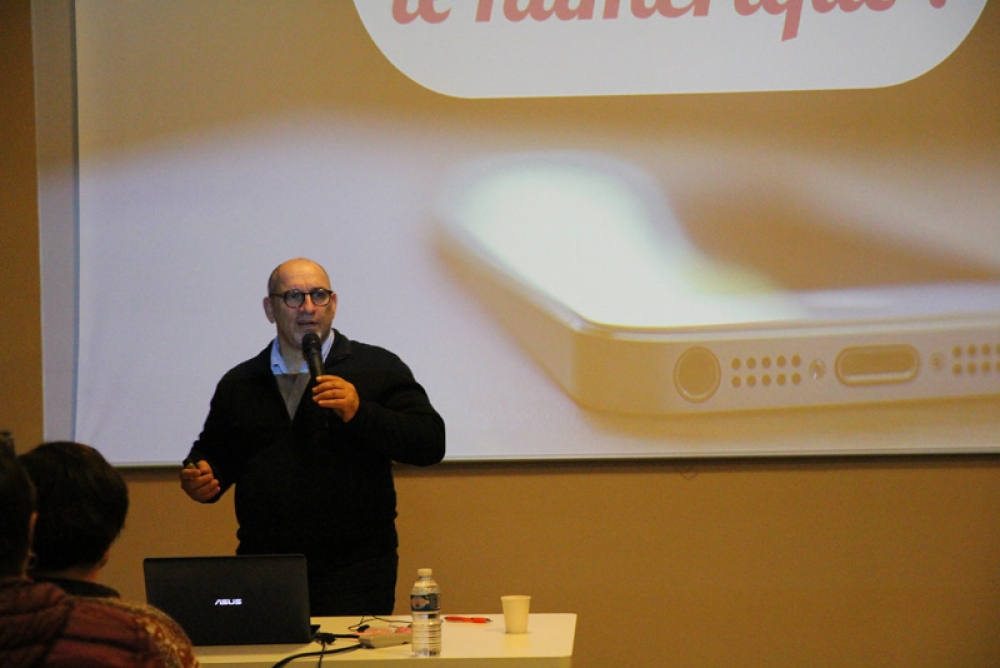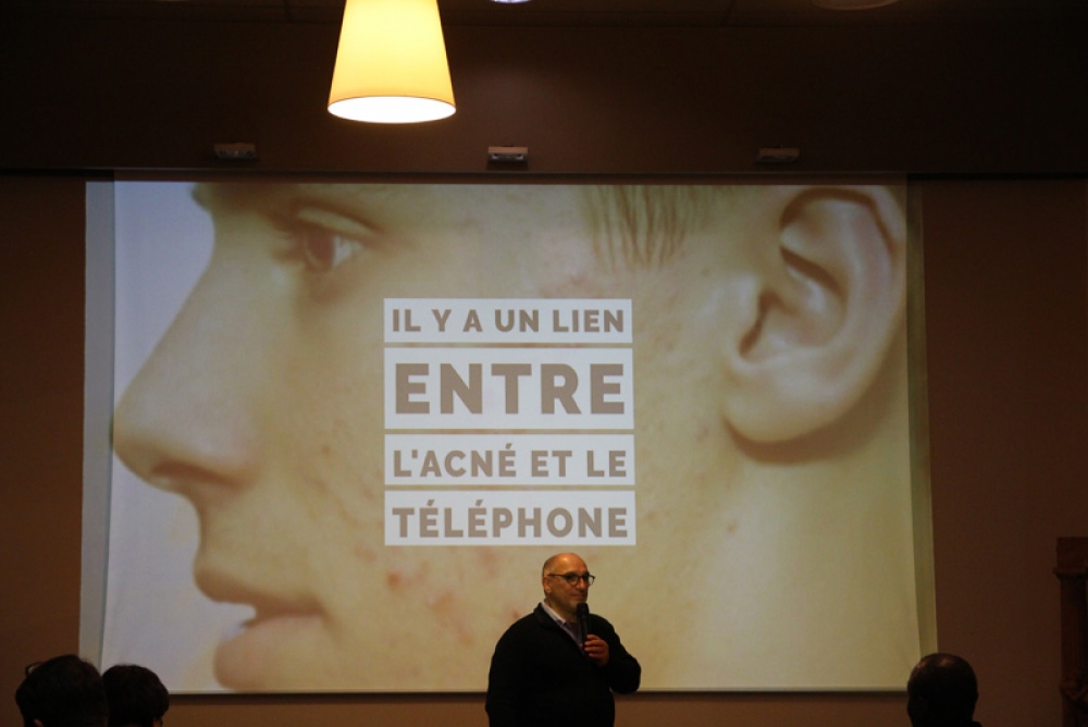 La conférence a fait salle comble au plaisir du formateur. "Je suis un « chasseur de stress »", nous confie t-il, "spécialisé dans la déconnexion numérique". Des papiers de couleurs étaient mis à disposition de l'assistance afin de répondre par oui (vert) ou par non (rouge) à chaque question posée afin de rendre la conférence à la fois vivante et ludique.