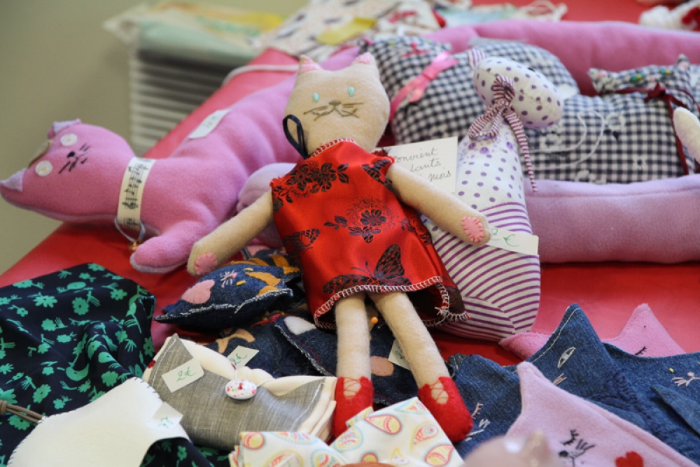 Des chats en veux-tu en voilà sous toutes les formes pour faire de jolis cadeaux de Noël pour petits et grands. Calendriers, décorations, doudous, beaucoup d’idées cadeaux réalisées, pour la plupart à la main par les membres de l’association, sur le thème du chat. Etait également présent Michaël Lebeau, photographe professionnel, avec une magnifique exposition de photos animalières, et Romy Boutteman, artiste-peintre Marlysienne avec des peintures contemporaines très colorées.