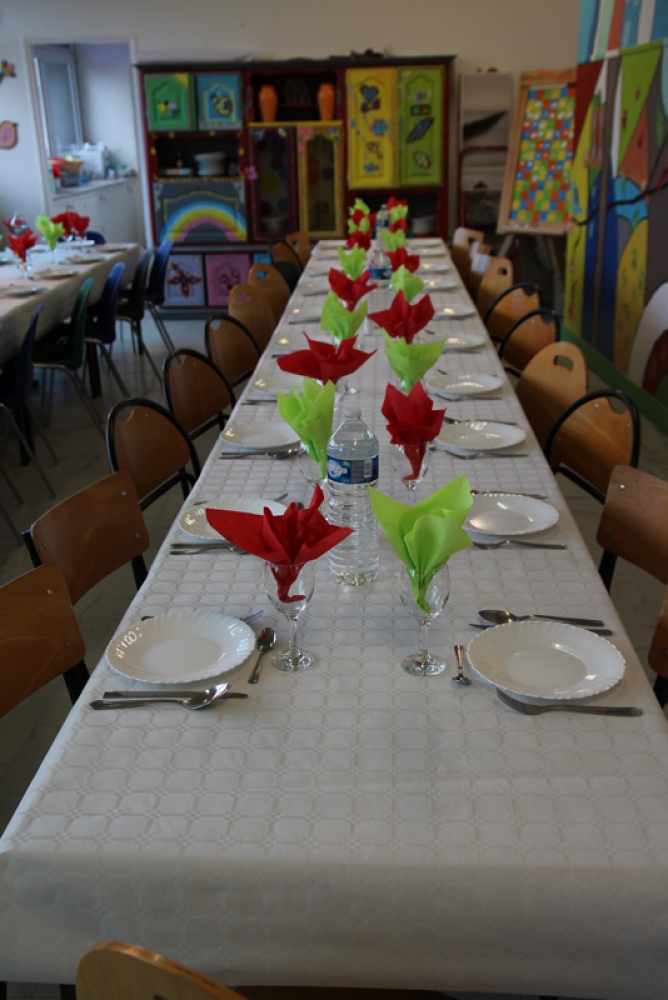 C’est autour d’une décoration de table aux couleurs du drapeau italien, vert, blanc et rouge que se sont rassemblés les habitants du quartier des Floralies ce jeudi 5 décembre à midi au Centre Social des Floralies.