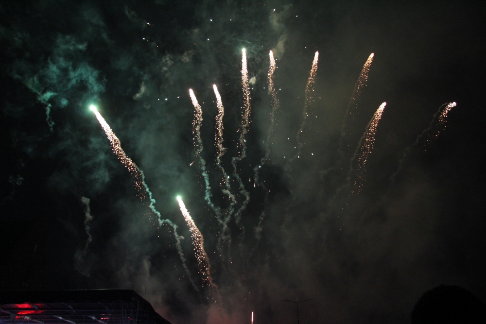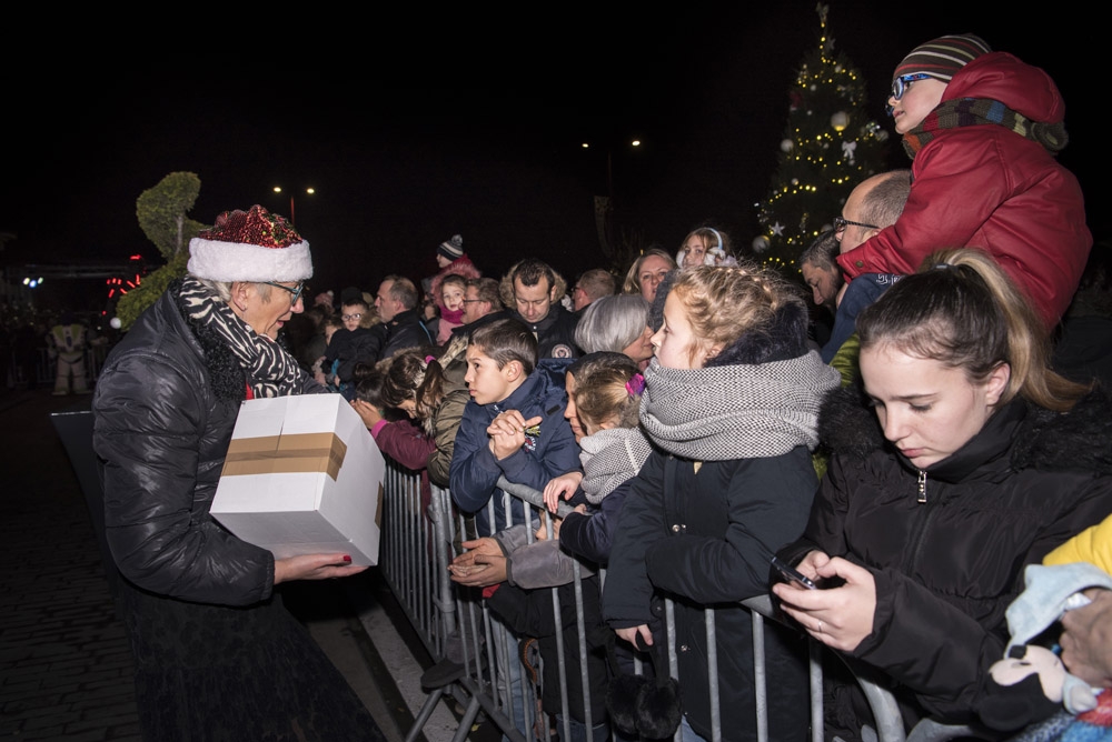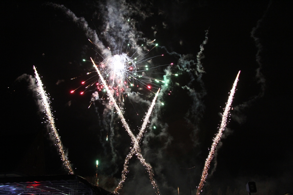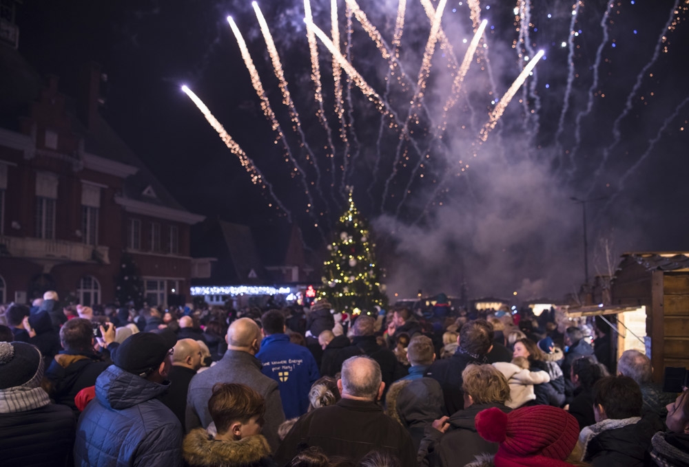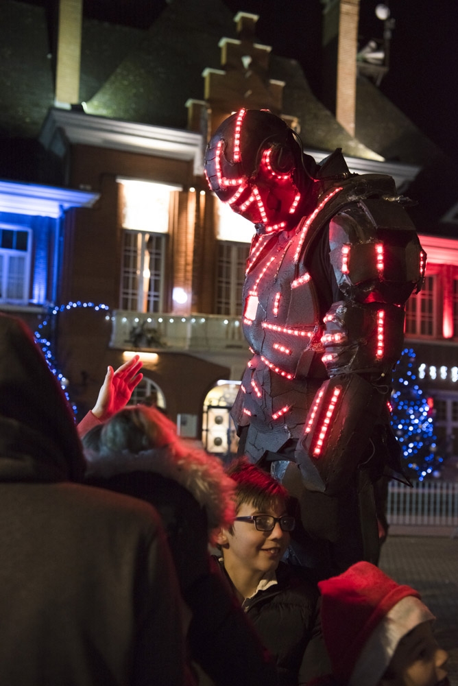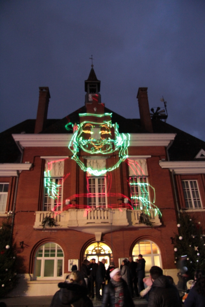 Samedi, l’association « Country Danse » nous a fait une démonstration habillée de rouge et de chapeaux de Noël et, une fois la nuit tombée, tous les regards se sont levés vers le ciel pour s’émerveiller devant un conte de Noël pyromélodique avec « L’étonnante aventure de Fizzy le Bonhomme de neige », show laser projeté sur la façade le la Mairie, et devant un magnifique feu d’artifice ! Le Père Noël nous est ensuite apparu sur le toit de la Mairie pour descendre en rappel jusqu’au sol, des bonbons plein les poches pour distribuer aux enfants.