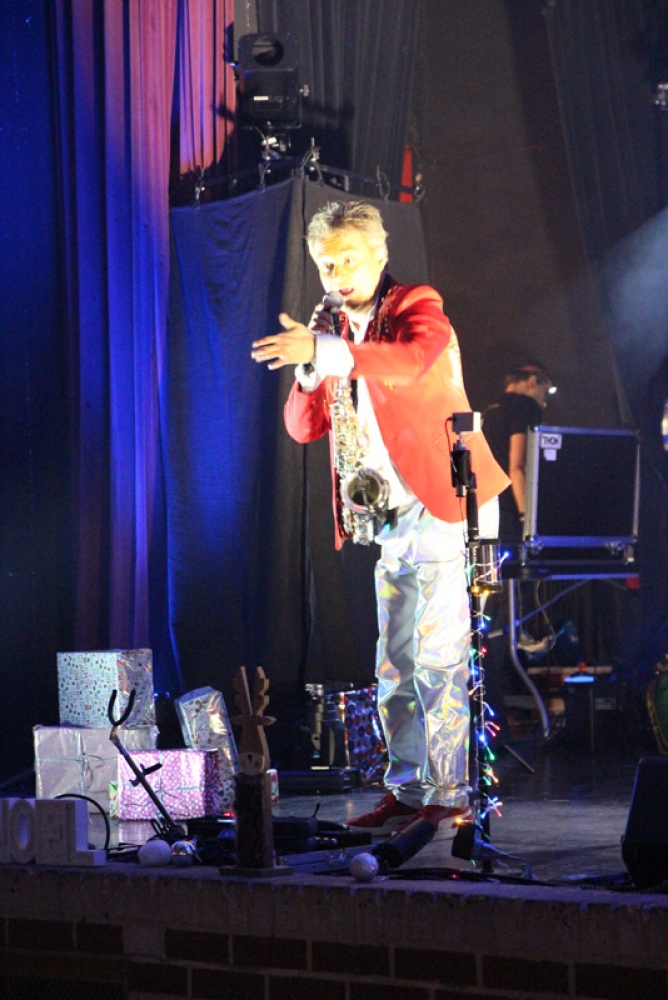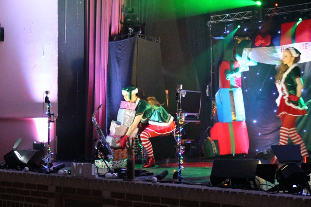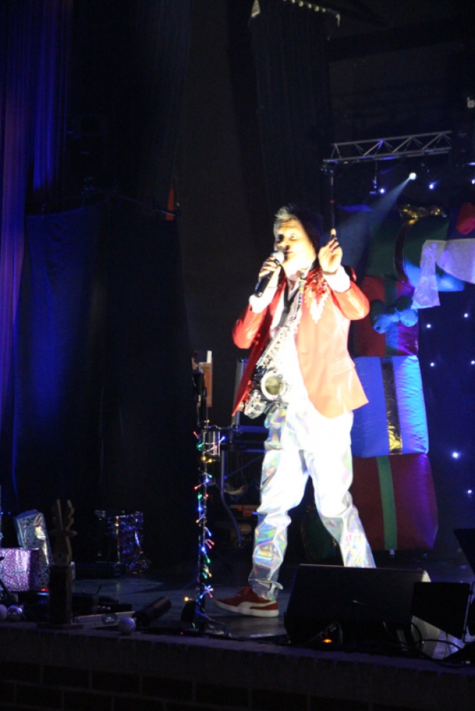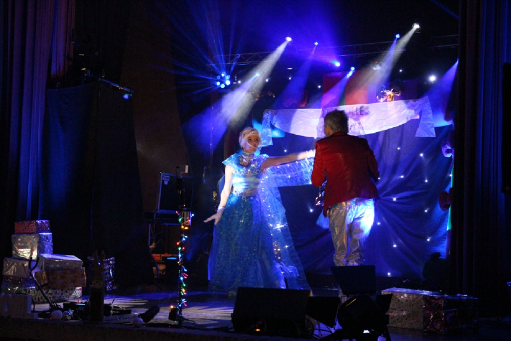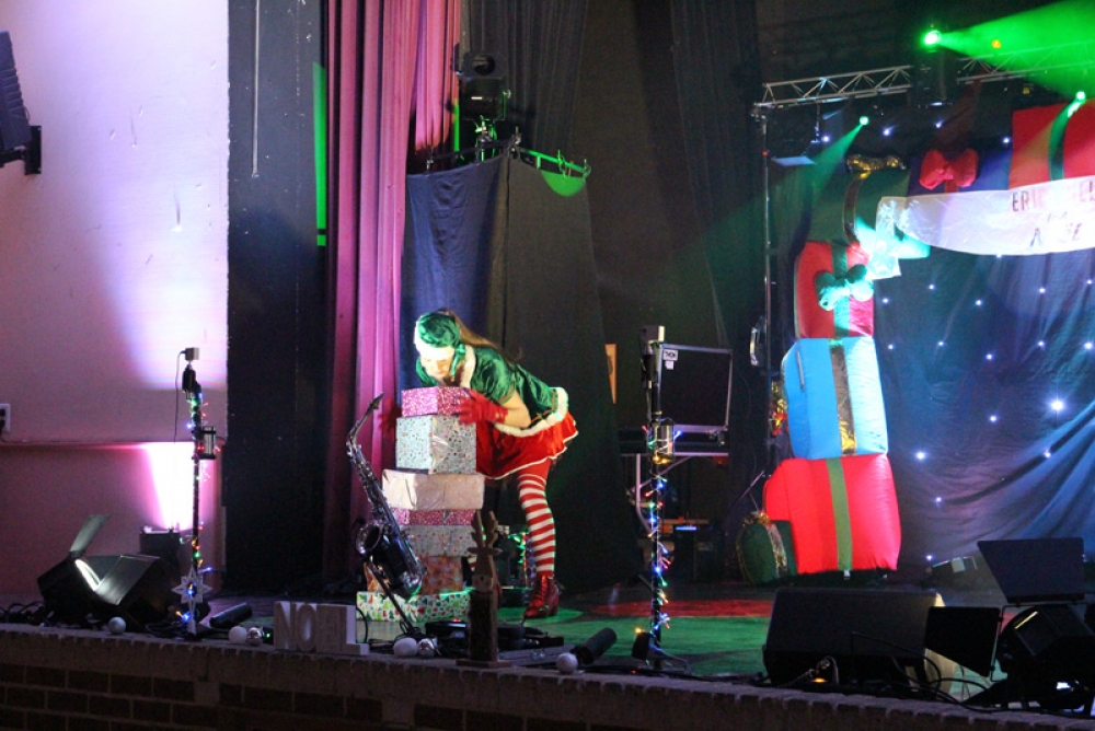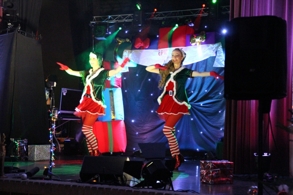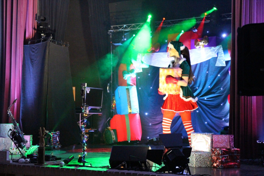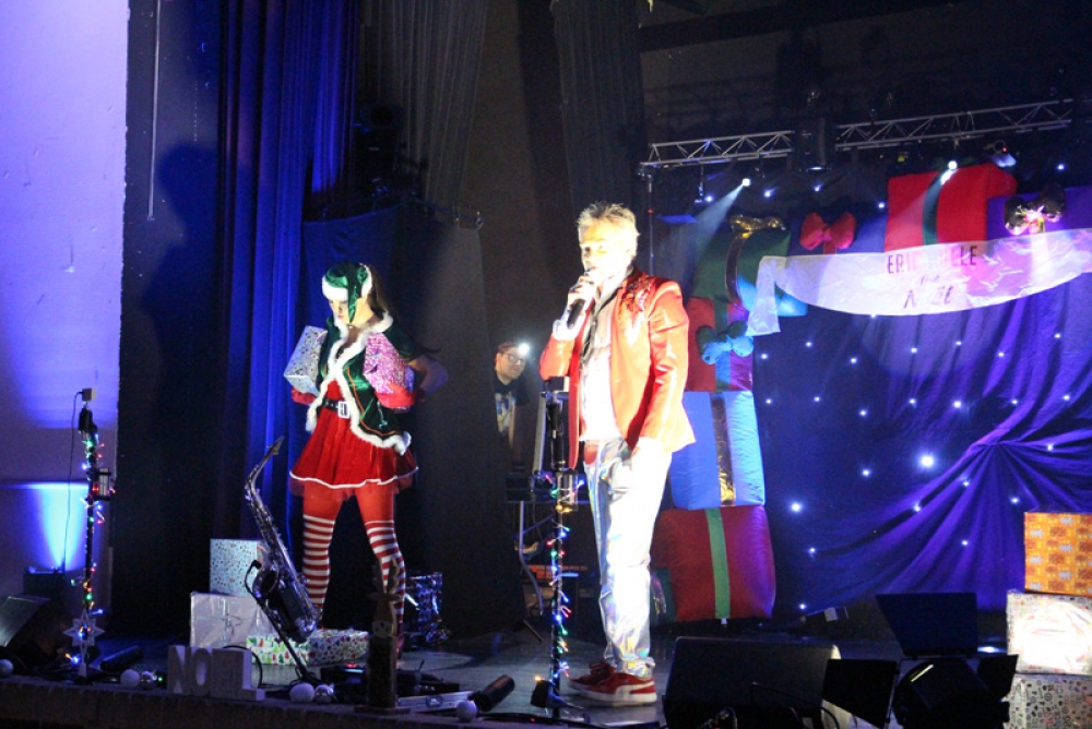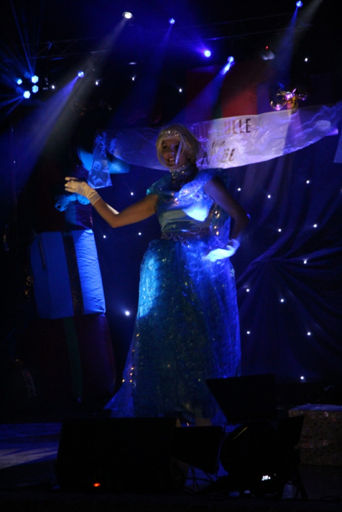Une Salle des Fêtes emplie d’enfants accompagnés de leurs parents venus voir le spectacle de Noël d’Eric Dulle. Grâce à sa performance, ses mises en scène rythmées sur des chansons de Noël et son saxophone, il a dynamisé la salle et fait participer les enfants. Ses mascottes et lutins, venus l’accompagner, ont enchanté le public ainsi que la belle Elsa, notre Reine des Neiges.