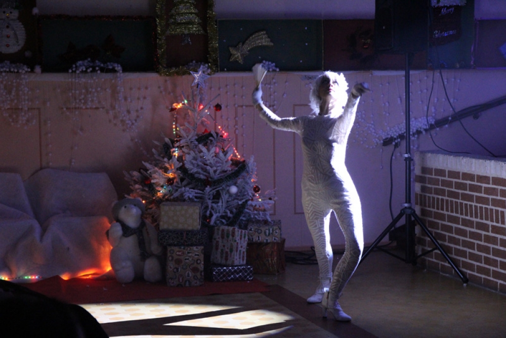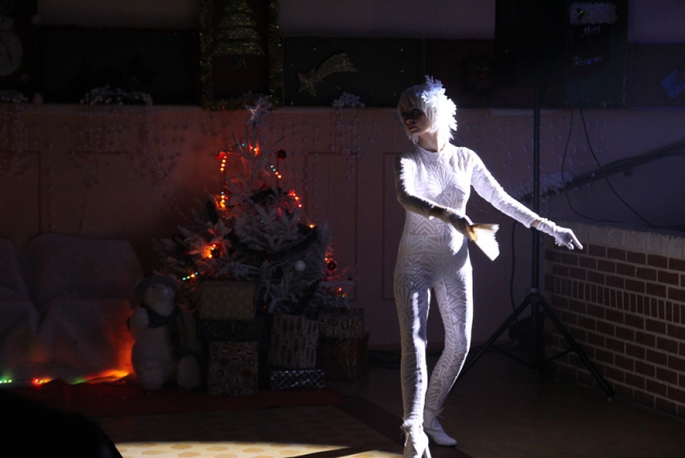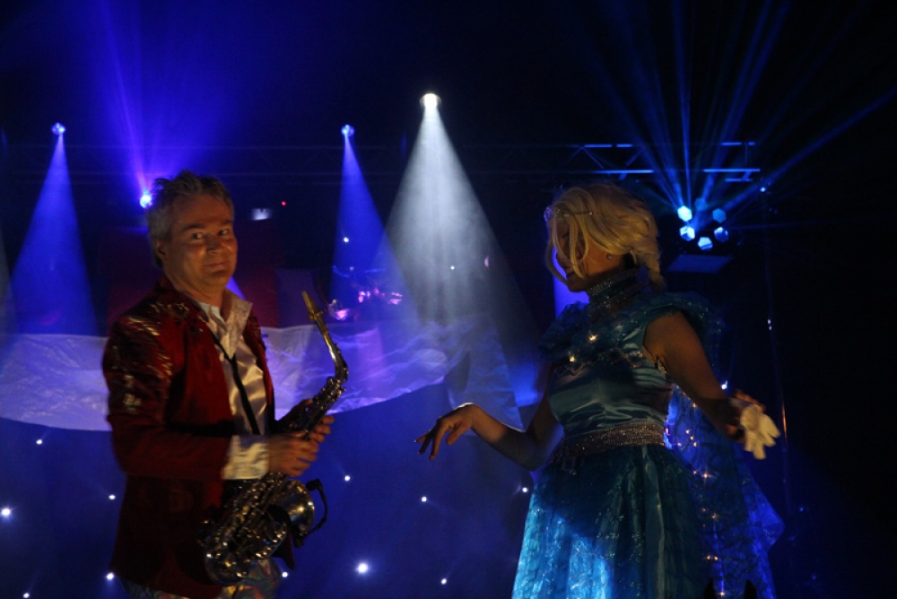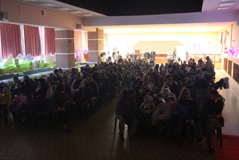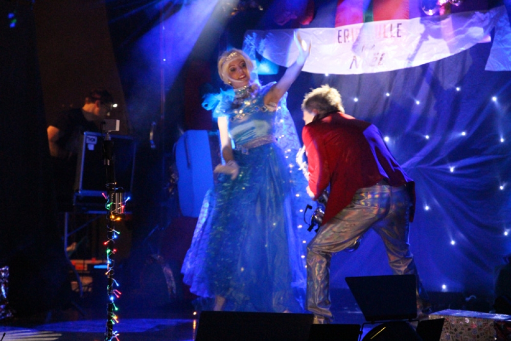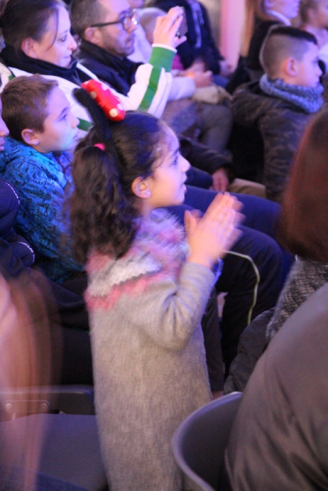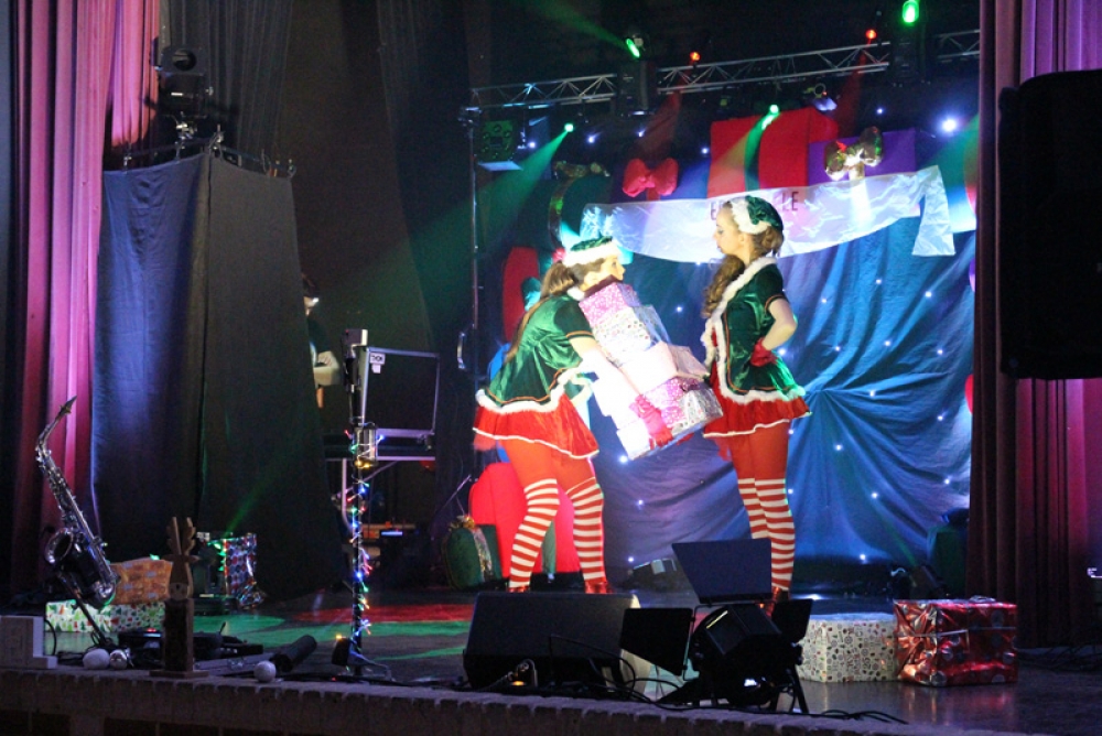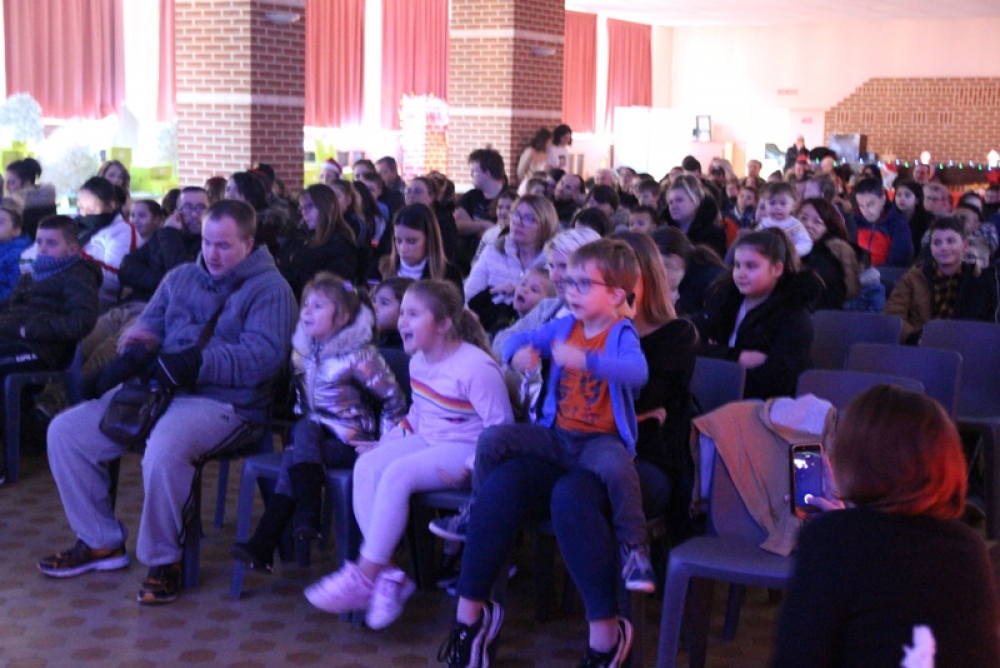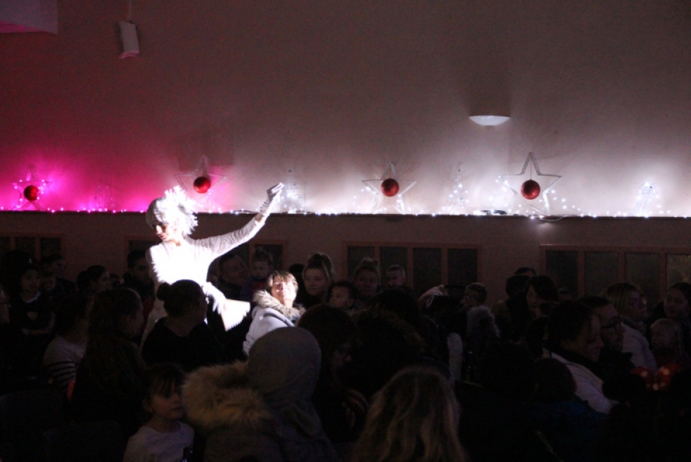 Une Salle des Fêtes emplie d’enfants accompagnés de leurs parents venus voir le spectacle de Noël d’Eric Dulle. Grâce à sa performance, ses mises en scène rythmées sur des chansons de Noël et son saxophone, il a dynamisé la salle et fait participer les enfants. Ses mascottes et lutins, venus l’accompagner, ont enchanté le public ainsi que la belle Elsa, notre Reine des Neiges.