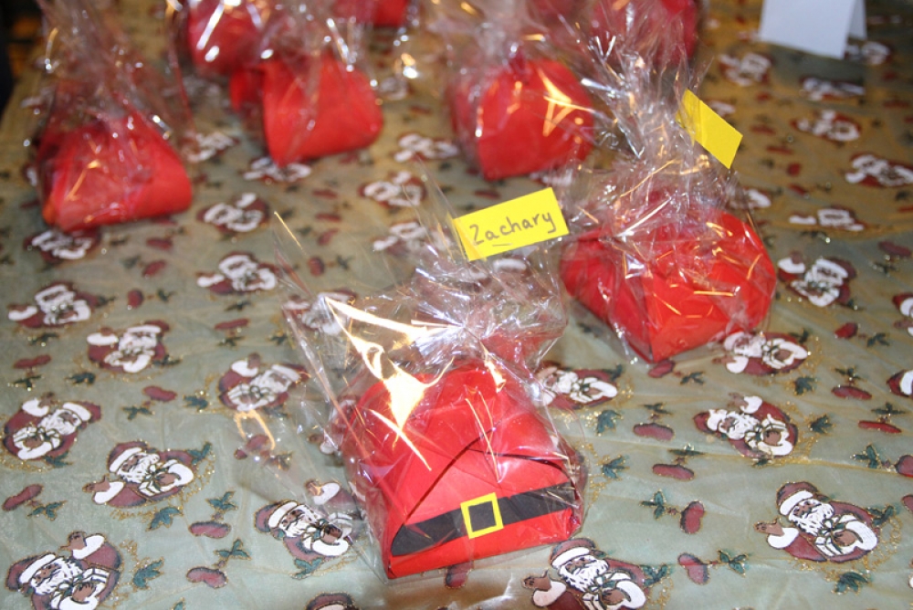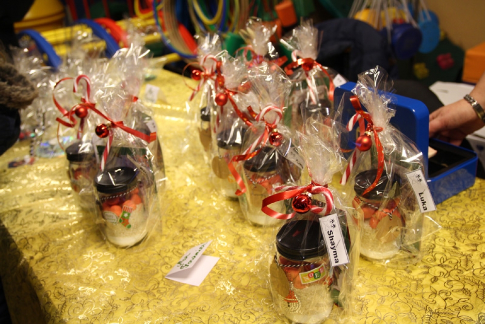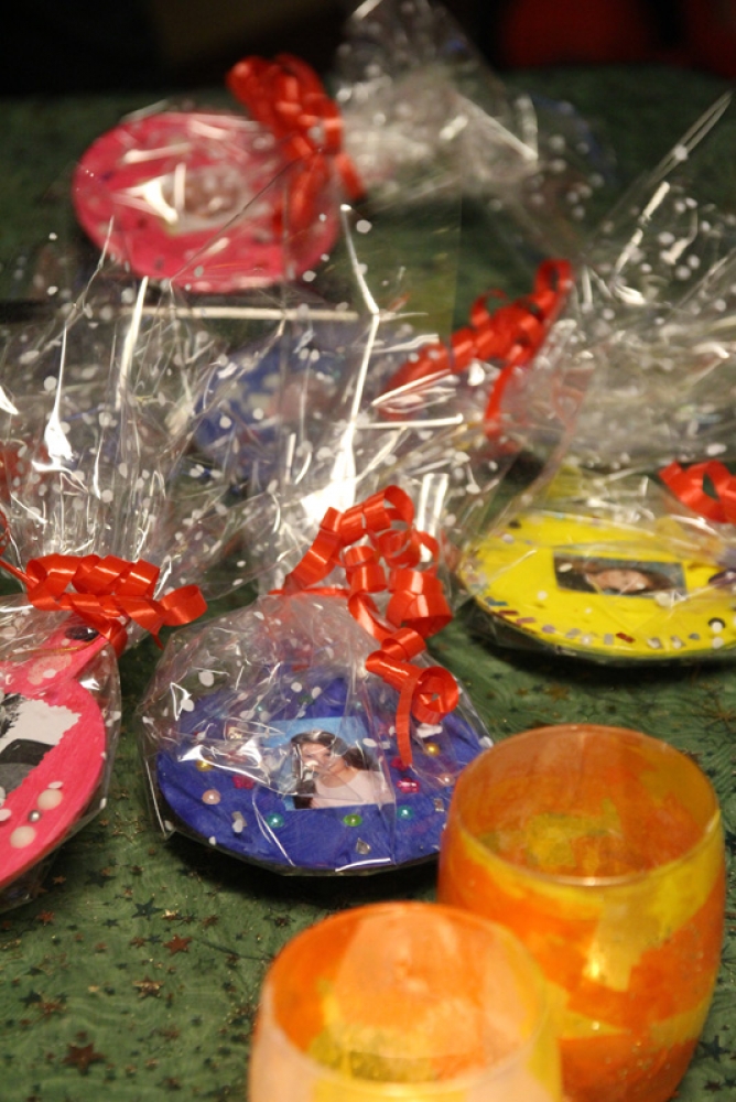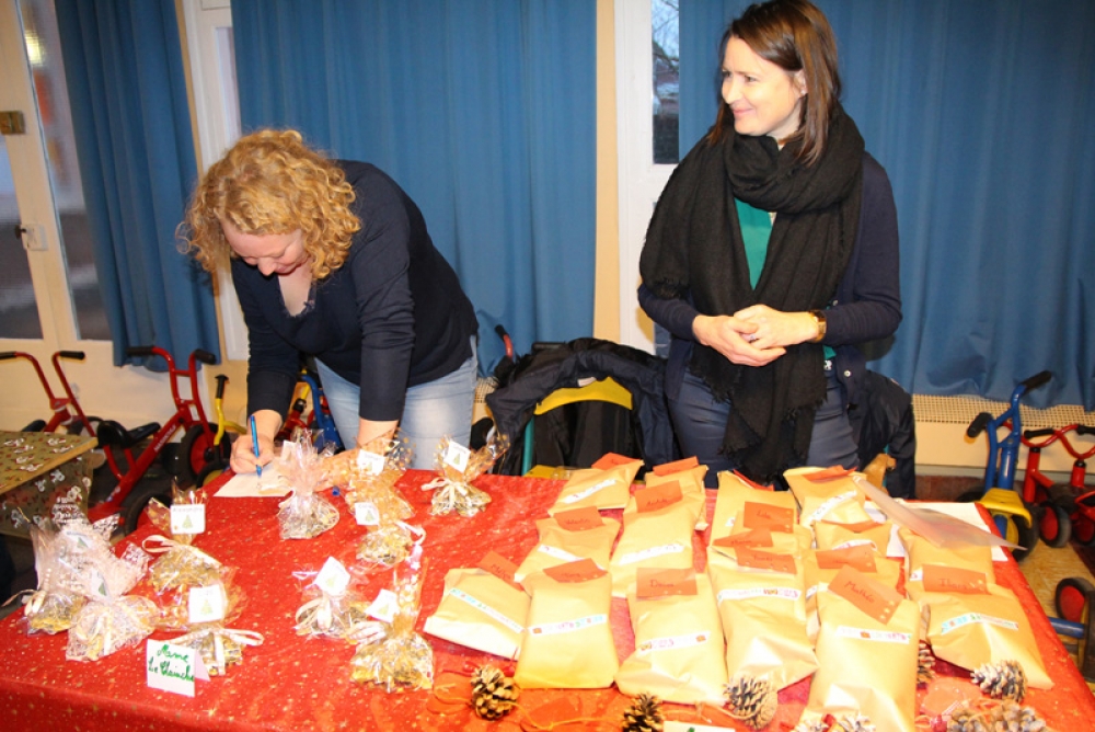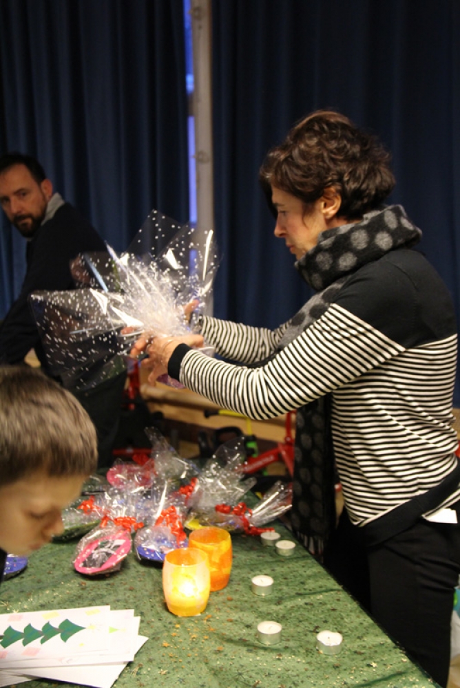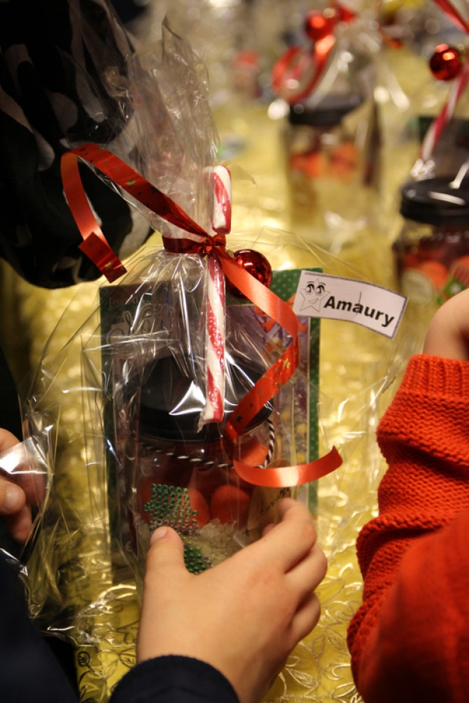 Mais que pouvait-t-il bien y avoir à l’intérieur de ces petits cadeaux bien emballés ? Beaucoup ont gardé le secret pour ne pas divulguer la surprise aux parents. Nous avons tout de même pu savoir que dans certains paquets se trouvaient du savon liquide, évidemment fabriqué par les élèves, des bonbons dans de jolis petits bocaux emplis de couleurs, décorations de Noël, compositions de fleurs, bougeoirs…