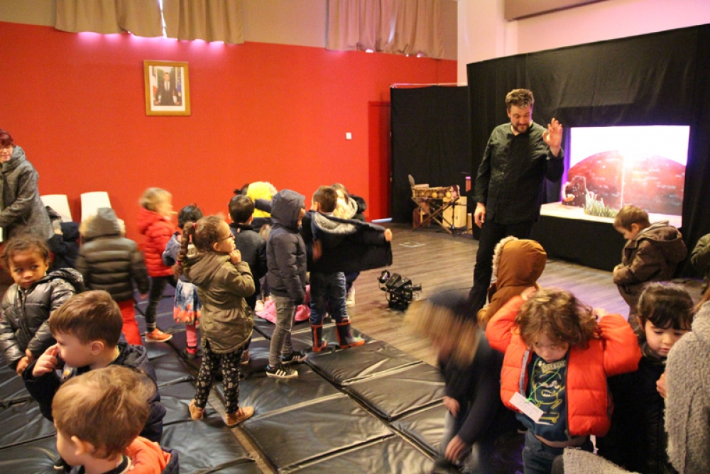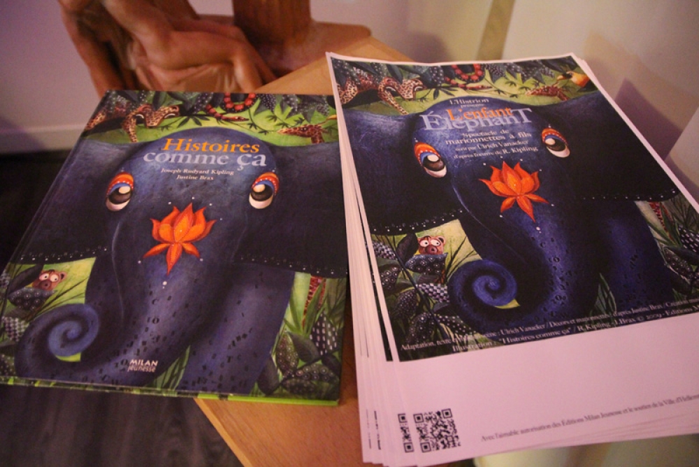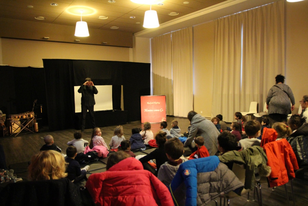 Un spectacle a également été présenté la semaine suivante pour les maternelles à la Salle du Conseil municipal (jardin d'enfants y compris) avec 480 enfants au total venus s’accroupir pour regarder les aventures de "L'enfant éléphant" par la Compagnie Histrion. C’est l’histoire du petit éléphant que l’on appelle « Petit curieux » qui pose beaucoup trop de questions ! Des marionnettes qui prennent vie pour nous plonger dans le monde de R. Kipling, l'auteur du "Livre de la Jungle", guidées par un conteur et accompagnées par un musicien.