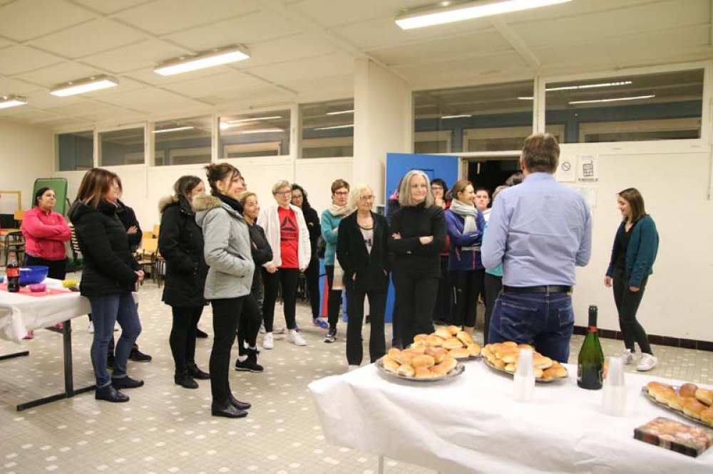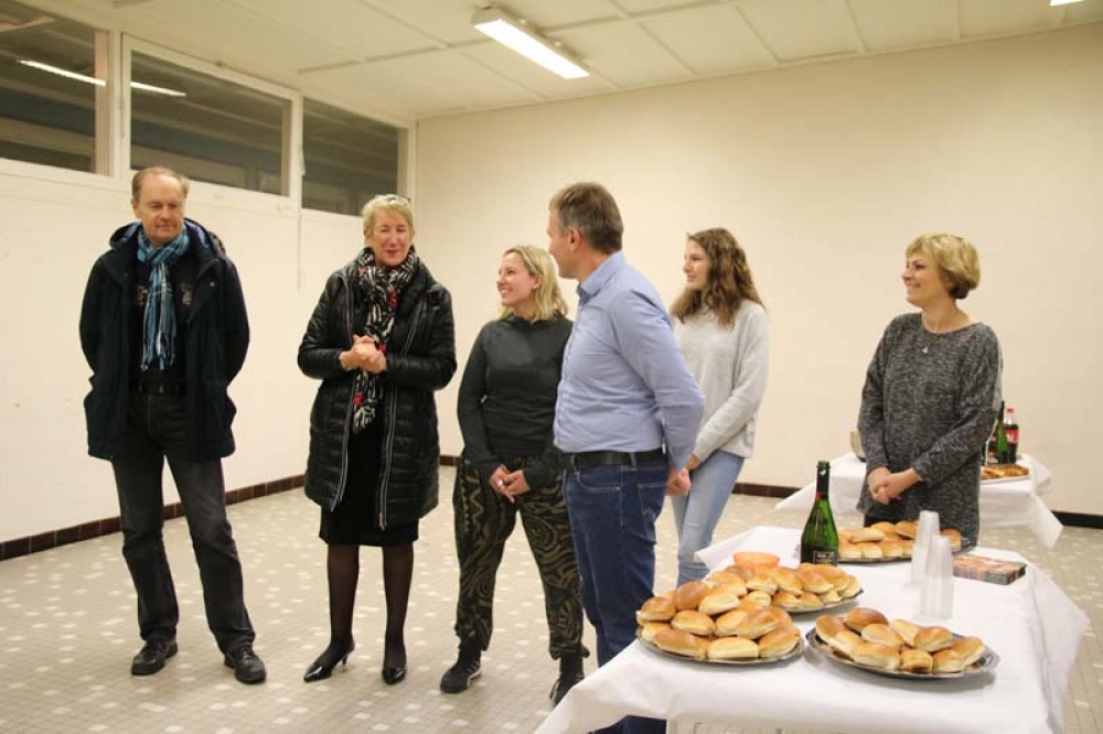 En effet, après leur cours, les élèves avaient prévu quelques cadeaux surprises et cartes de voeux à offrir à leur jeune coach. Un très beau geste qui fut applaudi par les représentants de la Ville de Marly, et qui débuta par le verre de l'amitié !