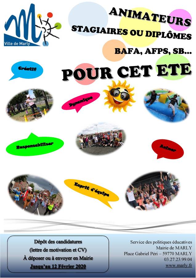 la Ville recrute des animateurs pour ses accueils de loisirs pour les mois de juillet et août 2020.