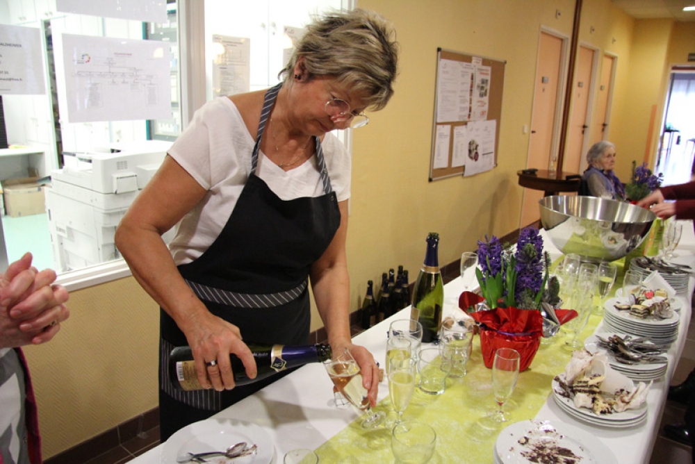 Tous au petit soin pour la centenaire mais aussi des résidents et invités, champagne, jus de fruits et un très bon gâteau ont été servis pour fêter l’événement !