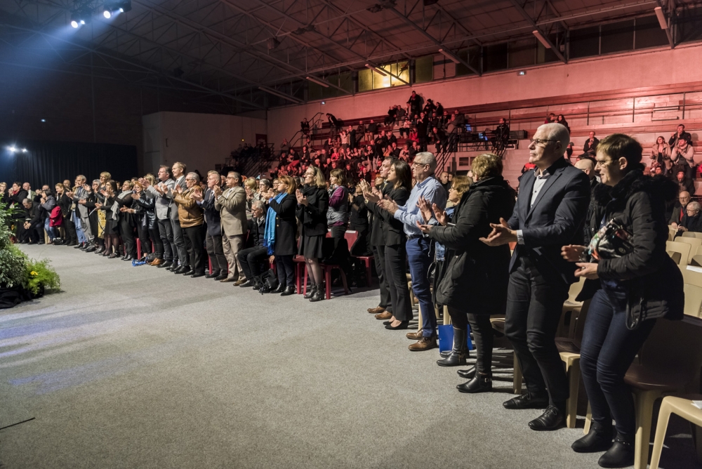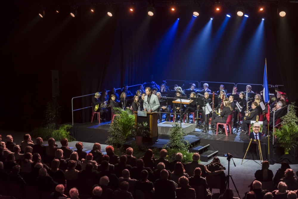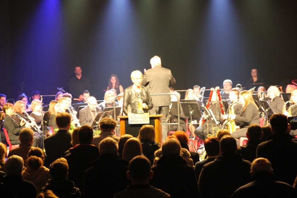 Un beau programme en perspective, avec l’accueil du public à partir de 17h30 et le début officiel de la cérémonie à 18h30. En hommage, plusieurs vidéos rétrospectives de Monsieur Fabien THIÉMÉ ont été diffusées sur les écrans : grand homme chaleureux et humain tel que nous le connaissions. « Un monument » comme disent beaucoup… Grand moment d’émotion suivi de L’Orchestre d’Harmonie de Marly qui a ouvert le moment musical avec le 3ème Mouvement Sigurd Jorsalfar de Edvard GRIEG.