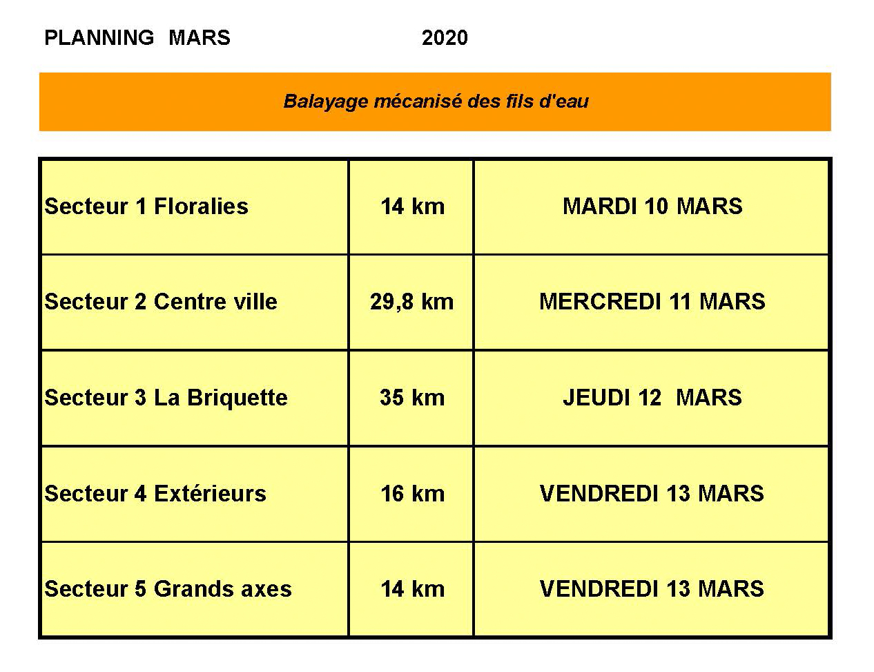 Les rues de Marly seront nettoyées mécaniquement secteur par secteur, selon le calendrier ci-après :
