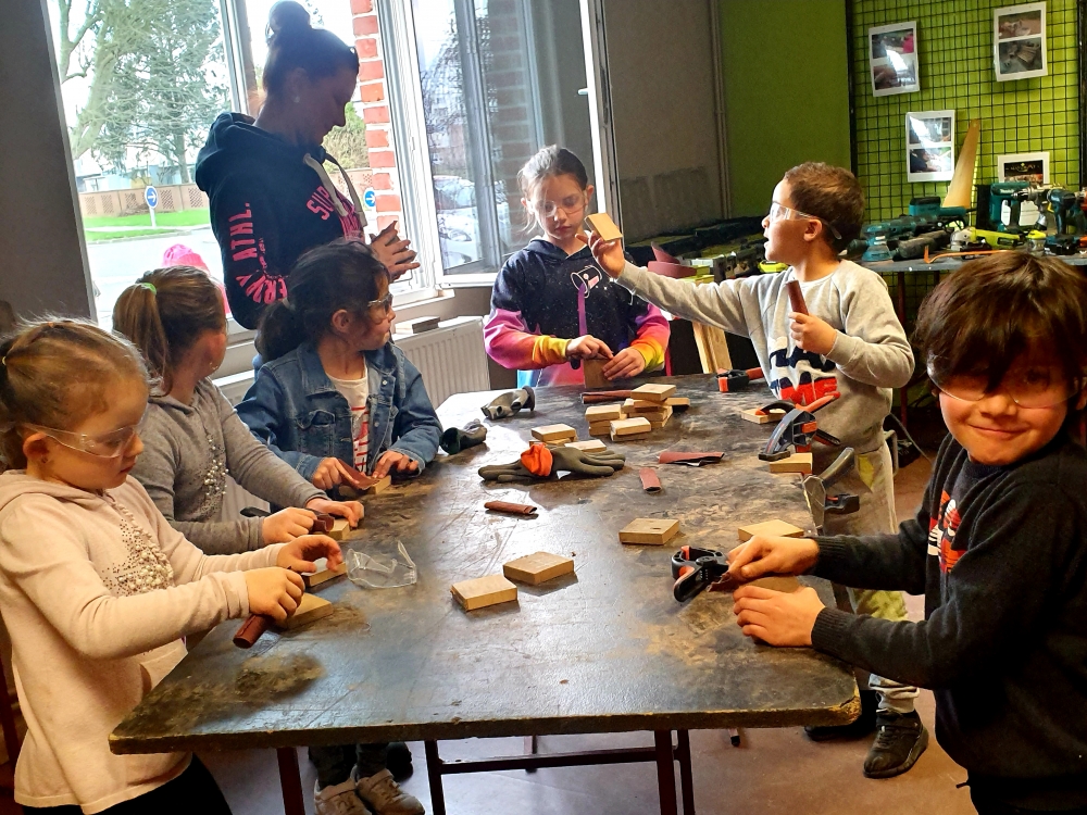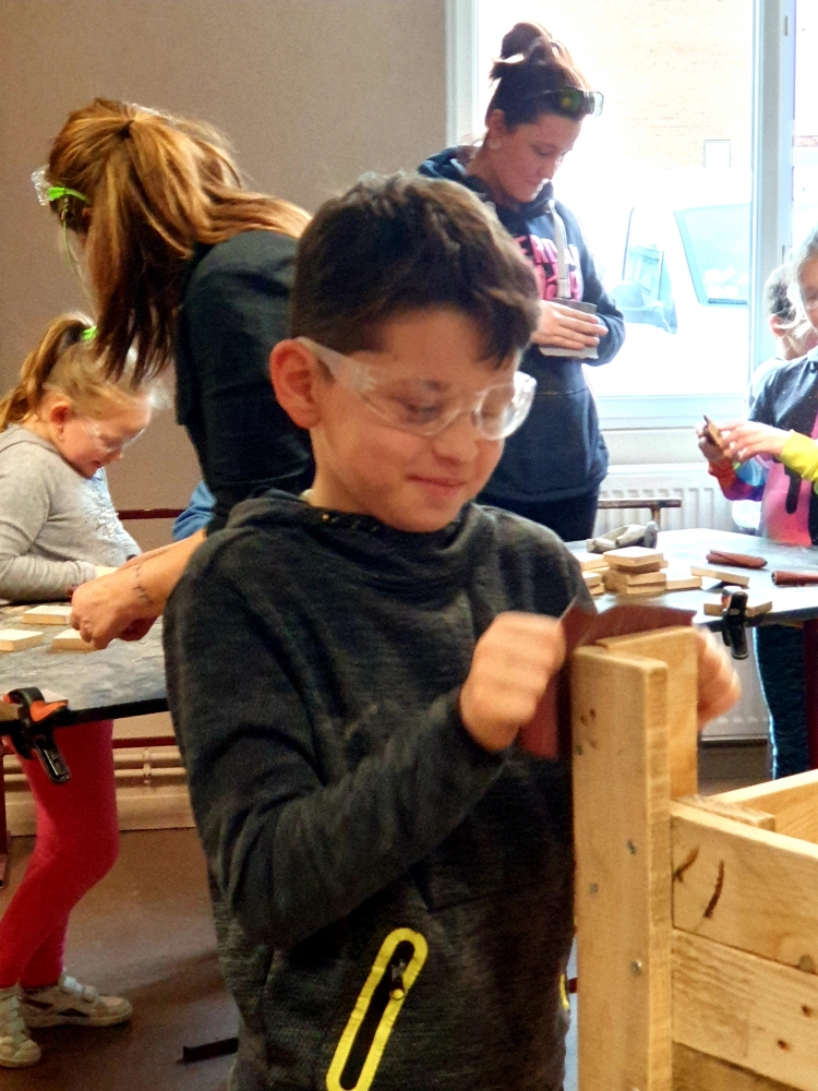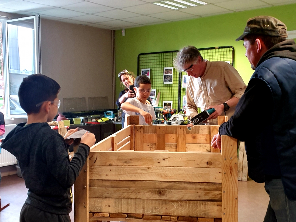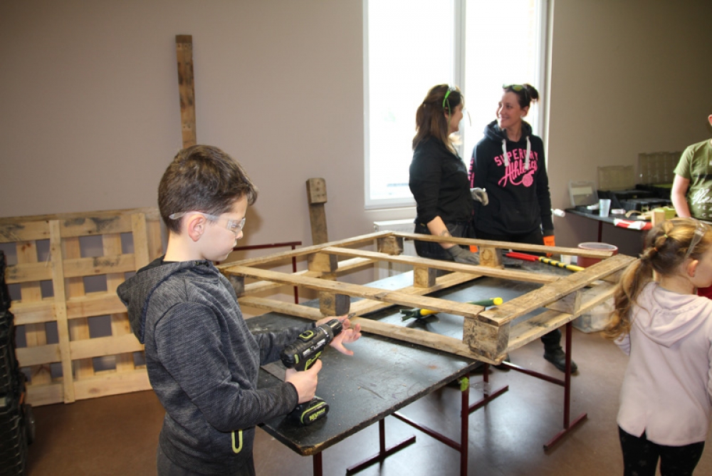 En effet, ce samedi, en présence des membres du Conseil municipal et de Monsieur le Maire, Jérôme LEMAN, des stands de jeux de société étaient mis à disposition des enfants ainsi que des ateliers d’éveil liés à la nature et de bricolage avec tous les outils nécessaires à la fabrication de carrés potagers en bois de palette. Les plus jeunes, mis à contribution pour participer aux mesures, découpes, assemblage et ponçage pour la finition, étaient très concentrés sous la surveillance des adultes !