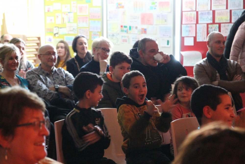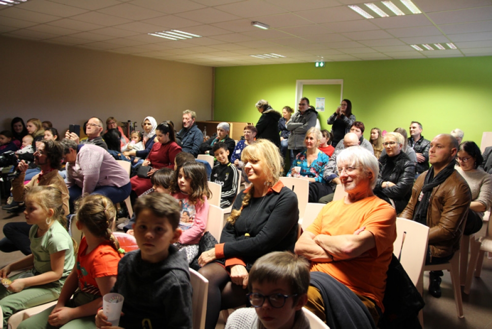 Et ce dimanche, Axel et Célestin, deux artistes comédiens ont proposé un spectacle hilarant avec des contes insolites en faisant raisonner l’accent ch’ti ! Les enfants se sont volontiers prêtés au jeu pour chanter et raconter les histoires avec ces humoristes un peu loufoques !