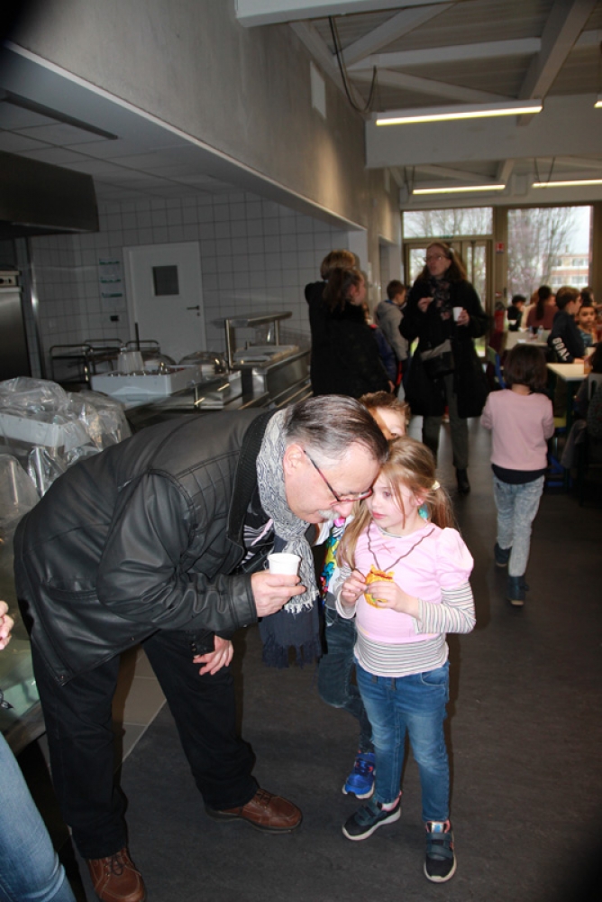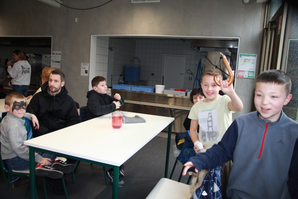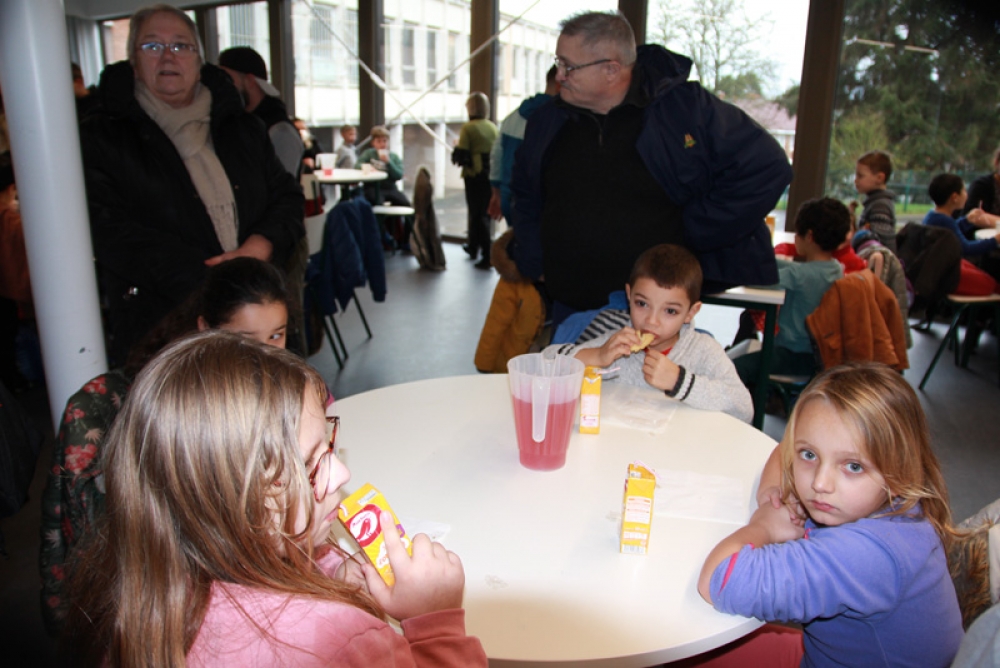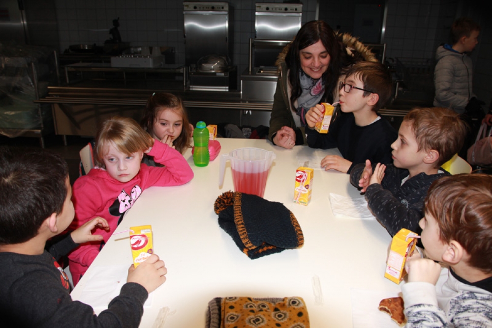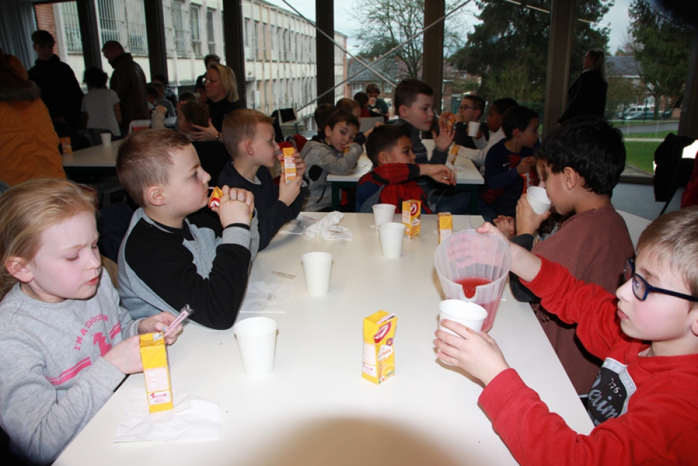 Une cantine pleine de vie et de joie, remplie d’enfants qui se sont régalés avec leurs crêpes, barres chocolatées et jus de fruits et où les éclats de rire se faisaient entendre !