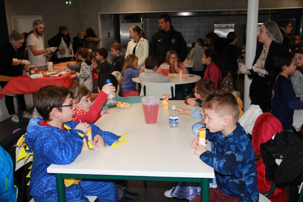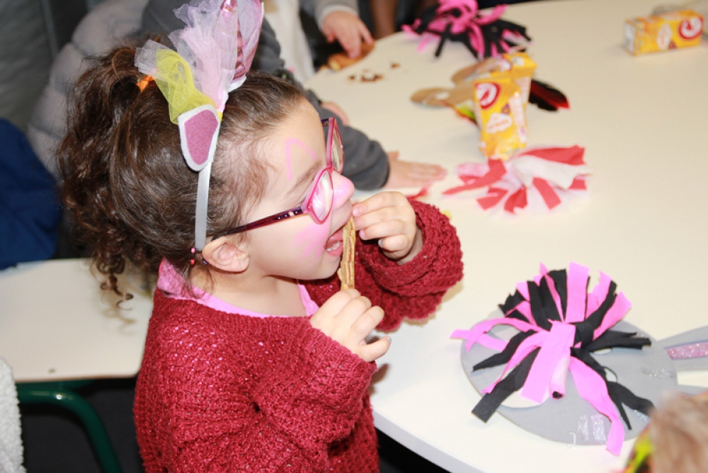 Les enfants de Passeport Loisirs, de la Perdriole et des Ork'idées se sont tous rassemblés à la cantine scolaire du groupe scolaire Marie Curie pour un goûter géant ! C’est Mardi Gras ! Les enfants sont à la fête avec leurs jolis costumes d’animaux, de fées, de super héros… et maquillages adéquats !