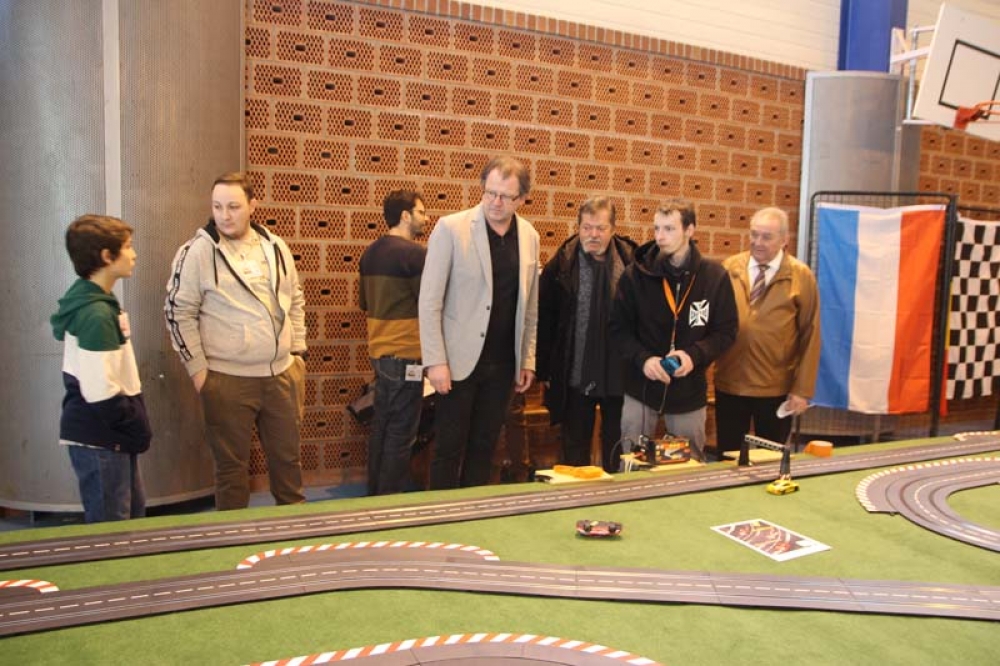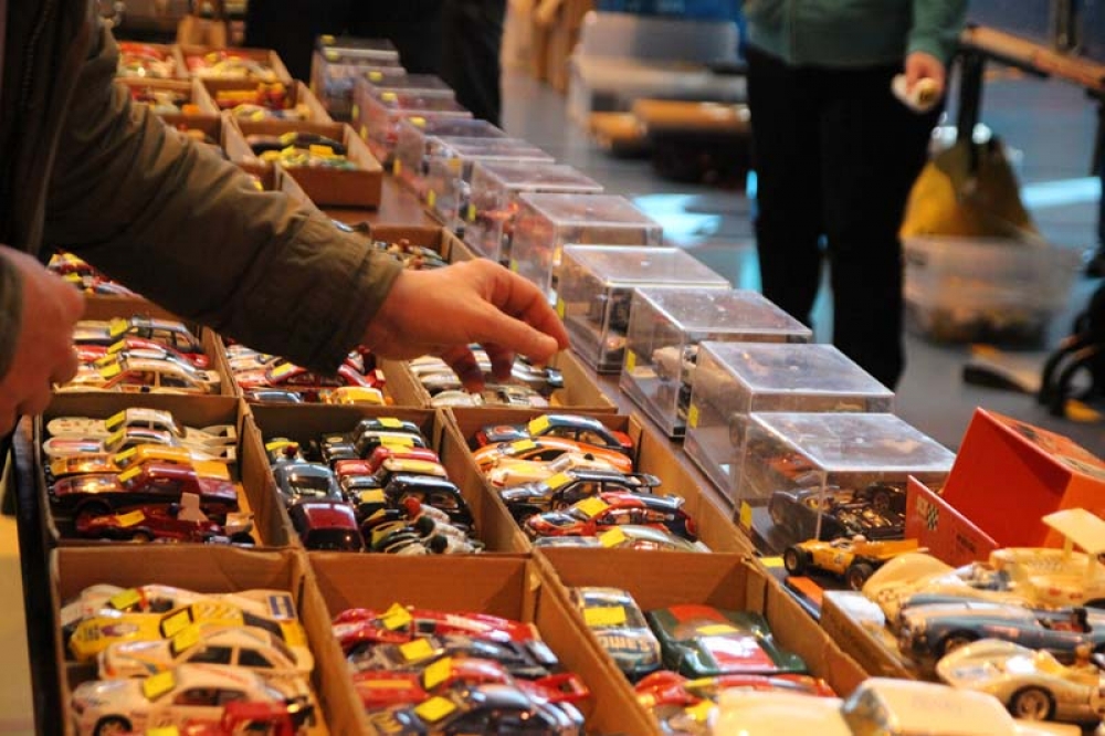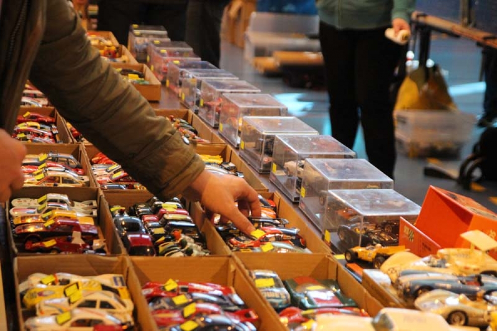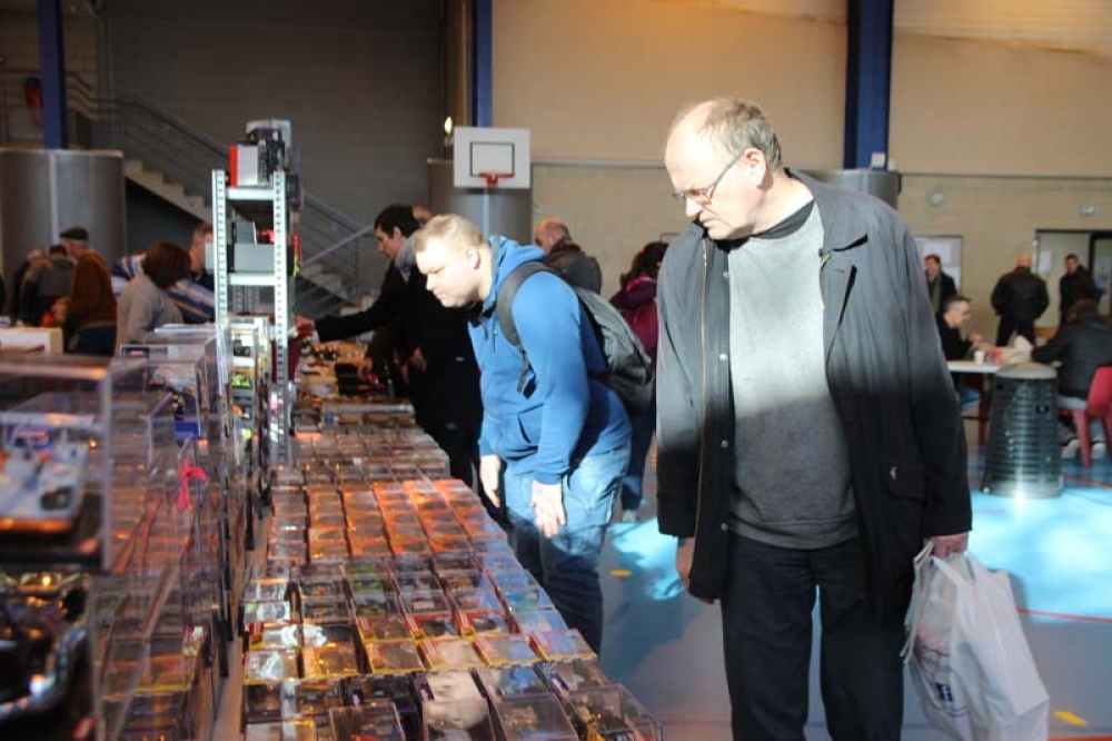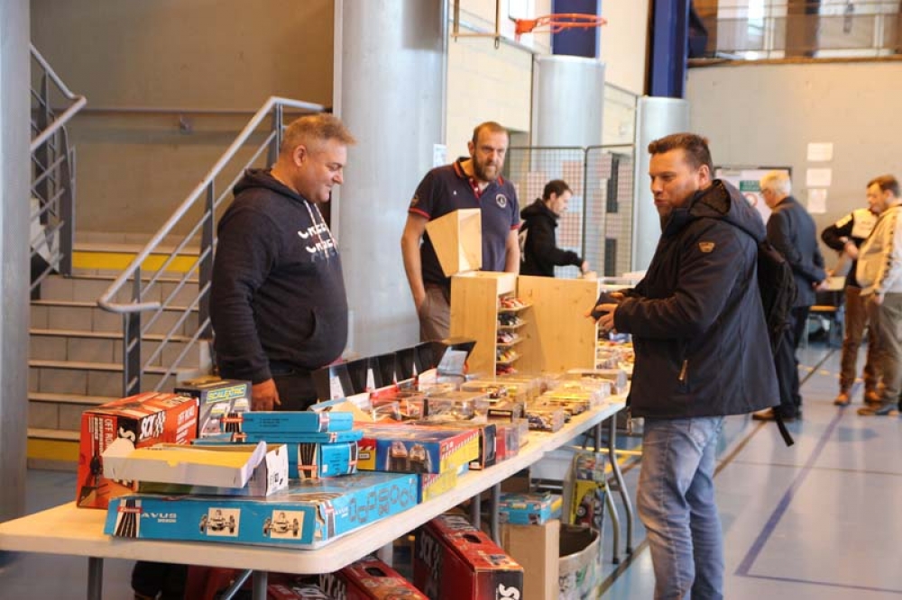Dimanche 1er mars, des visiteurs de toute l'Europe se sont rendus à la salle Schumann pour voir, acheter ou échanger des voitures de course à l'échelle 1/24ème, 1/28ème et bien plus encore, mais aussi tester en direct l'effet qu'elles procurent sur circuit !