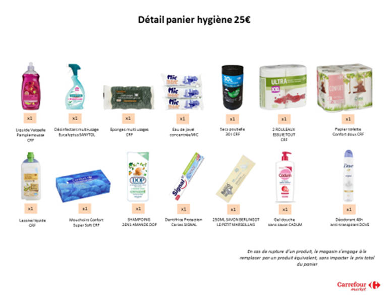 Ces paniers sont destinés à répondre aux besoins urgents des personnes éligibles. Les articles proposés ne sont pas substituables.
