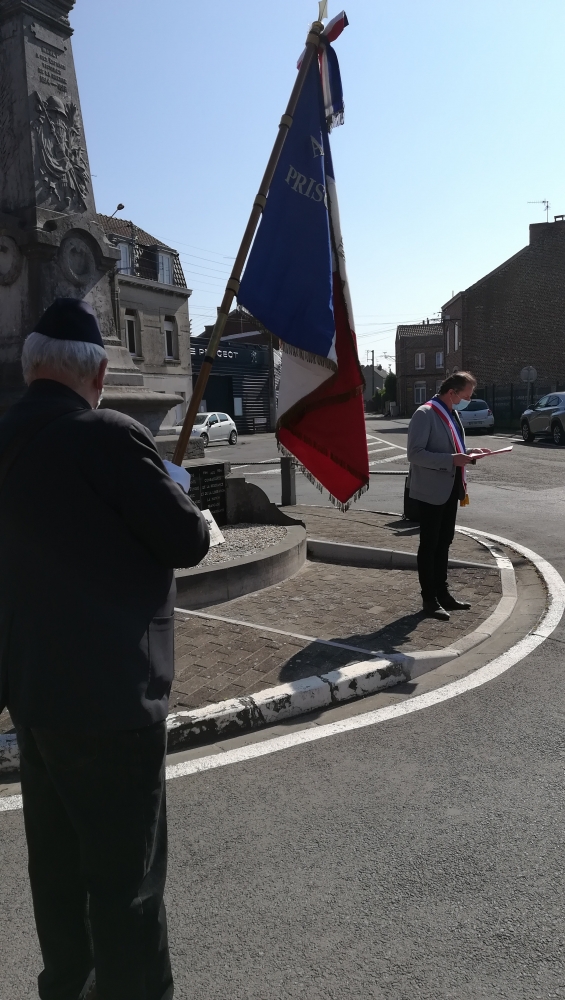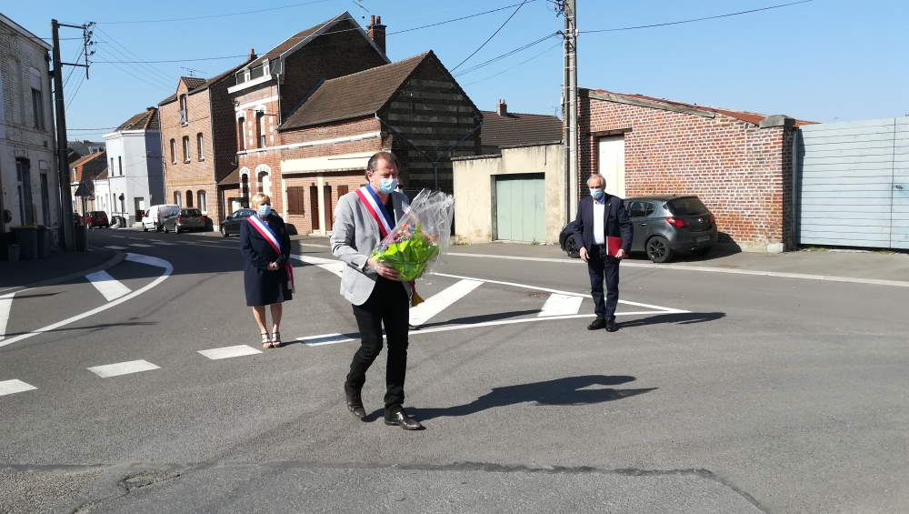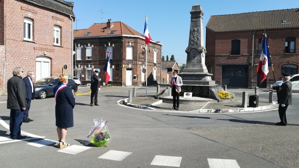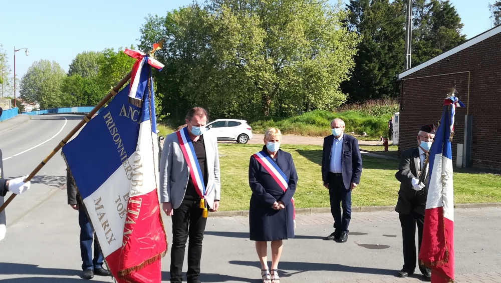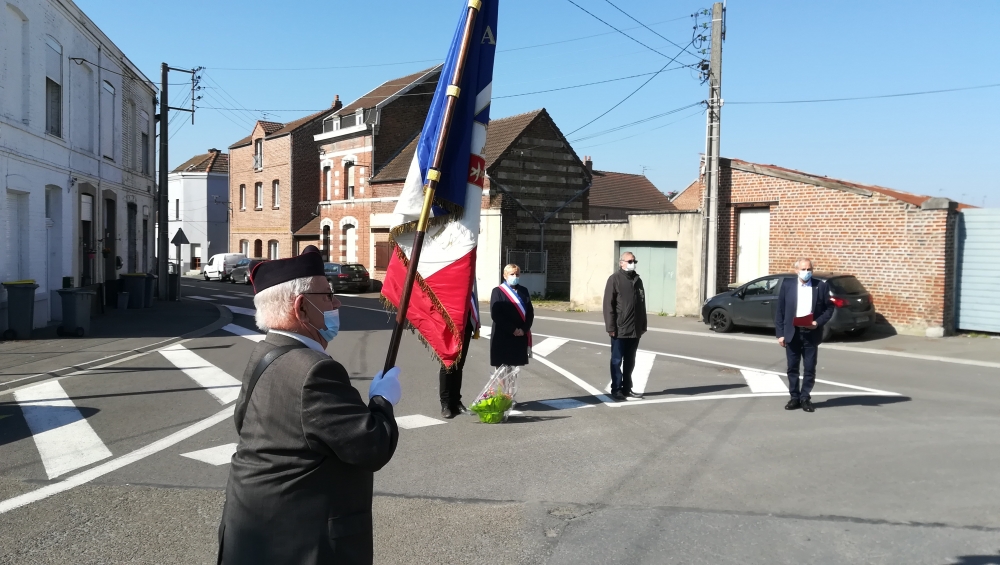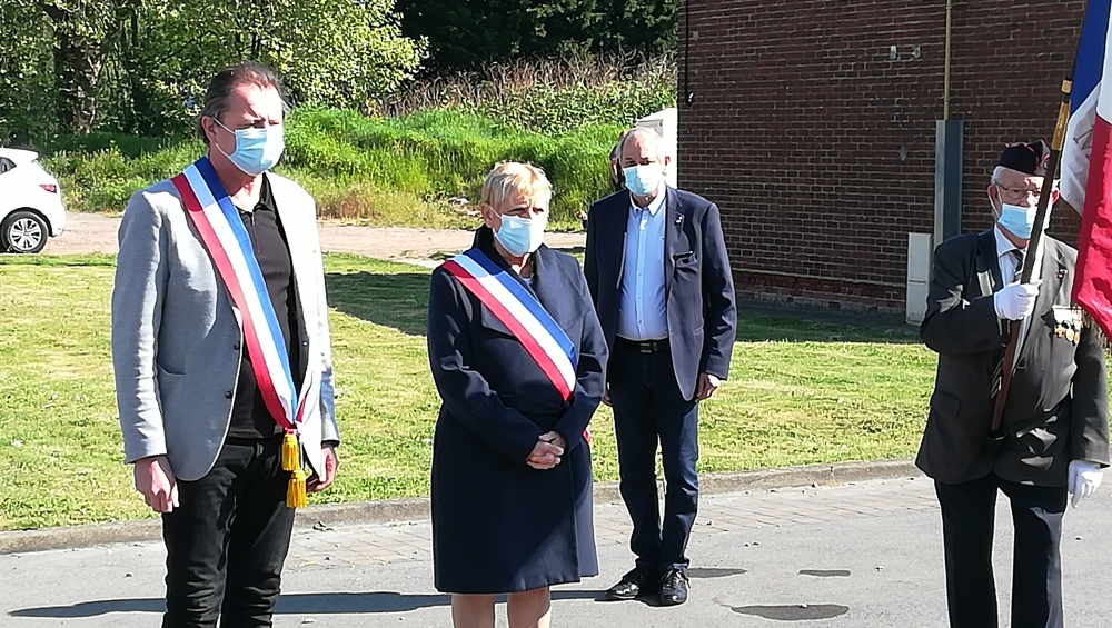 La cérémonie commémorative de la Journée nationale du Souvenir des Déportés, ce dimanche 26 avril, a revêtu une symbolique toute particulière. C’est en comité restreint et dans le respect des gestes barrières que Monsieur le Maire, Jérôme Leman, notamment accompagné du Président des Anciens Combattants, M. Joël Boute, et de porte-drapeaux désignés par l’association, s’est rendu au Monument de la place des Déportés et au Monuments aux Morts, place du sergent Blary.