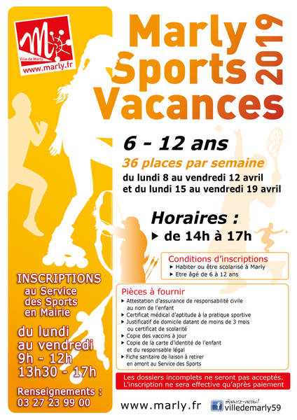 Retrouvez ci-dessous les conditiions d'inscriptions à Marly Sports Vacances :
