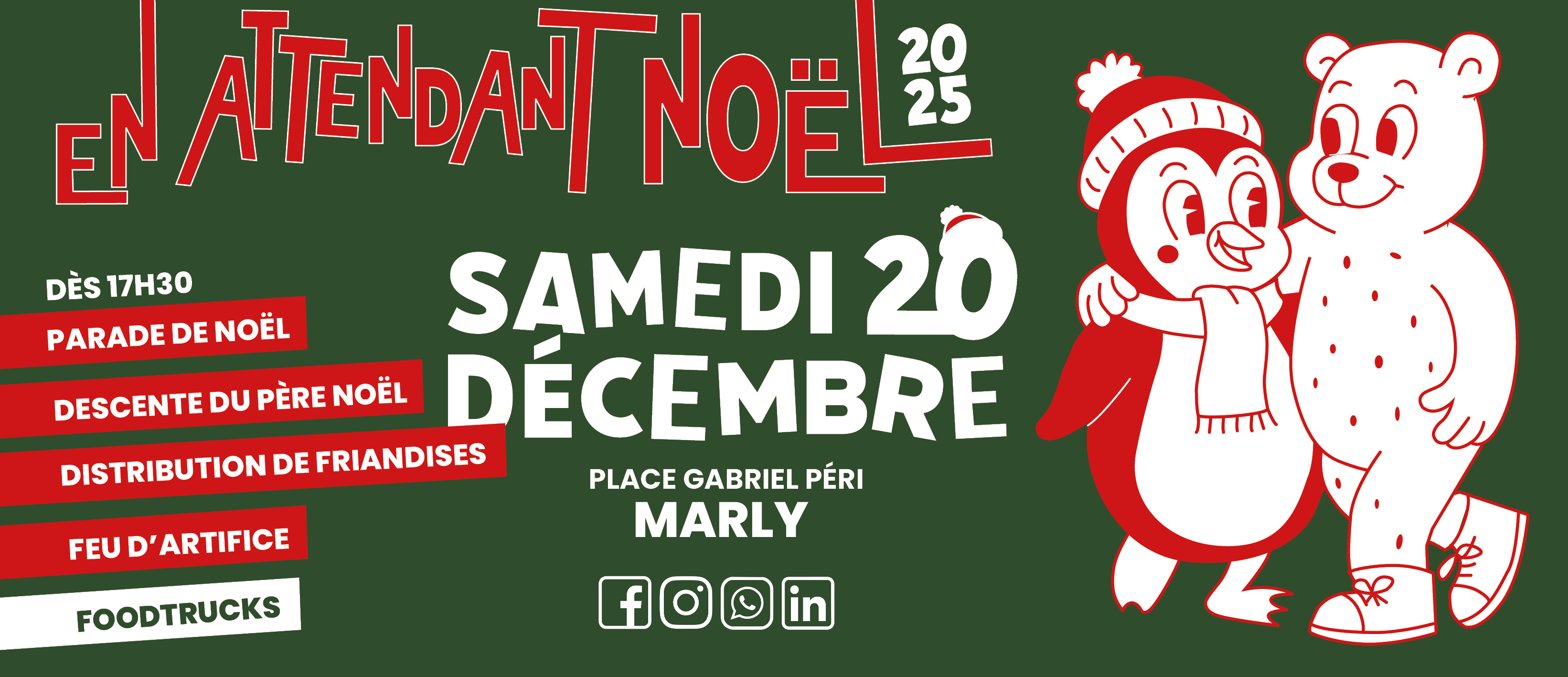 🎅En attendant Noël 2025🎅Rendez-vous samedi 20 décembre sur la place Gabriel Péri de Marly (59) dès 17H30 pour les festivités de Noël !Au programme : - Parade de Noël- Descente du Père Noël- Distribution de friandises- Feu d’artifice- Foodtrucks