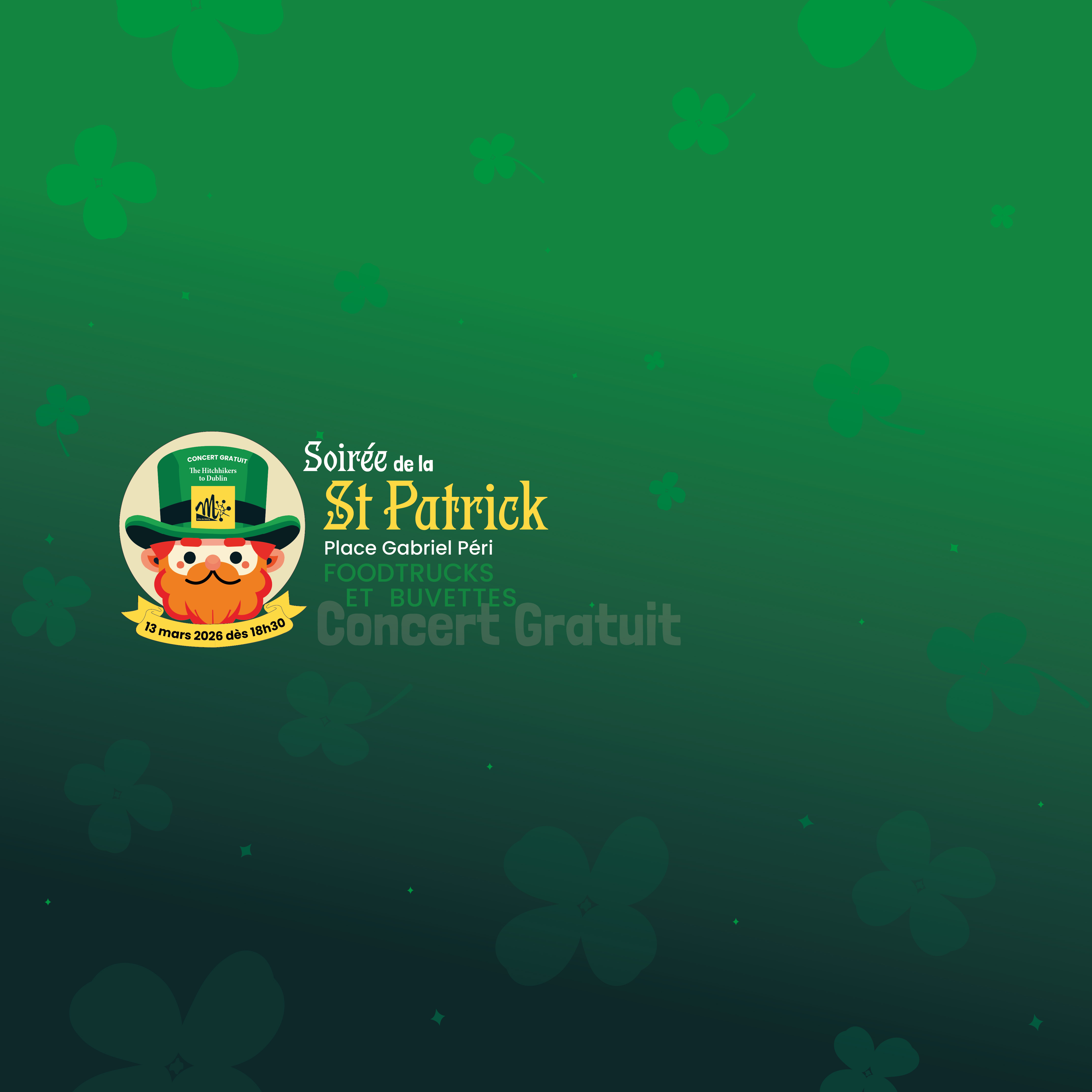 Bloquez votre agenda : la soirée de la Saint Patrick revient à Marly pour la 3e édition, le vendredi 13 mars, Place Gabriel Péri !