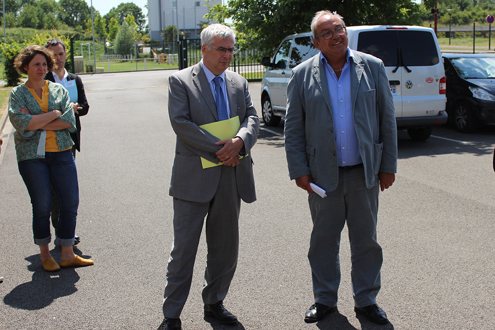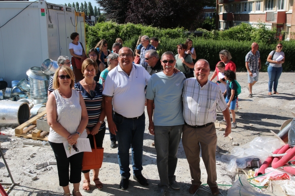 Hier, jeudi 4 juillet, Monsieur le Maire avait convié la directrice du groupe scolaire Marie Curie, Mme DAVOINE, enseignants et parents d'élèves, sans oublier les membres du Conseil d'école, à une visite du chantier du futur restaurant scolaire.