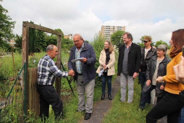 Répondant à l'invitation de M. et Mme VASSEUR, de l'Association de Sauvegarde des Jardins Ouvriers, et de M. Marc DUVIVIER, du Collectif « Valenciennois en transition et adaptation », Monsieur le Maire, Fabien THIÉMÉ, accompagné d'élus du Conseil municipal dont Jérôme LEMAN, Adjoint au Cadre de Vie, s'est rendu ce mercredi 5 juin aux jardins ouvriers route de St Saulve pour échanger sur le projet d'extension du golf et de la future base de loisirs financés par Valenciennes Métropole.