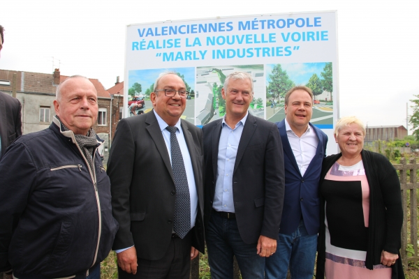 Samedi 25 mai, M. le Maire, Fabien THIÉMÉ, en présence des membres du Conseil municipal, et du Président de Valenciennes Métropole, M. Laurent DEGALLAIX, a dévoilé le panneau annonçant le lancement des travaux de la future voirie "Marly Industries" débutant de l'ancien pont des imbéciles des Floralies jusqu'au Stade du Hainaut : 1 km 300 de voie piétonne, routière et cyclable.