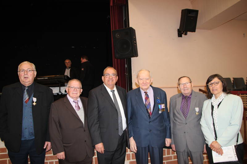 Parti de la place Gabriel Péri, le défilé, avec en tête l'Harmonie municipale, s'est arrêté devant la Plaque Commémorative rue du 8 mai 1945 pour un premier dépôt de gerbes.