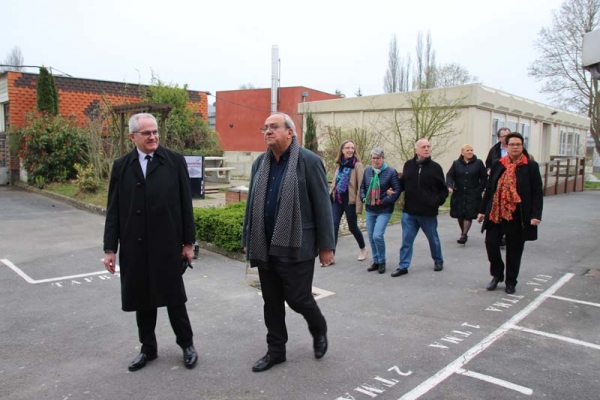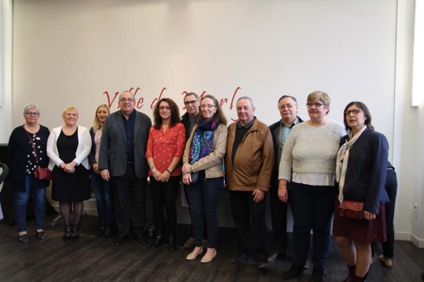 A l'occasion de sa visite à la maison de quartier de la Briquette, Monsieur le Maire, Fabien THIEME, a été présenté par le directeur du centre social, Bertrand GUINET, à l'atelier alphabétisation.