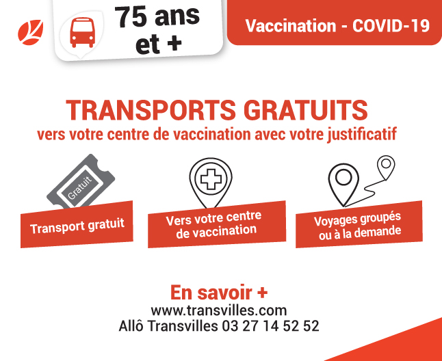 Suite aux récentes annonces du gouvernement pour le déploiement de la campagne de vaccination COVID-19, et à la demande du SIMOUV, Transvilles a mis en place, depuis le 18 janvier dernier, un service de transport dédié pour les personnes de 75 ans. Ce service permet aux personnes sans solution de mobilité de rejoindre facilement leur centre de vaccination gratuitement.
