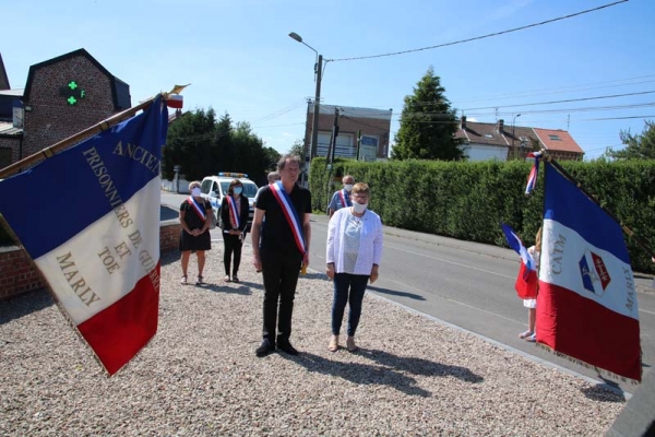 C'est en appliquant tous les gestes barrières que s'est déroulé la cérémonie de l'hommage à la Résistance ce mercredi 27 mai, au monument du Roleur, en présence de Monsieur le Maire, Jérôme LEMAN, de la première adjointe, Marie-Thérèse HOUREZ, des élus Virginie MELKI-TETTINI, Serge LEKADIR et de Mme Monique DUPONT-PICALAUSA, présidente du comité ANACR de Trith-st-léger.