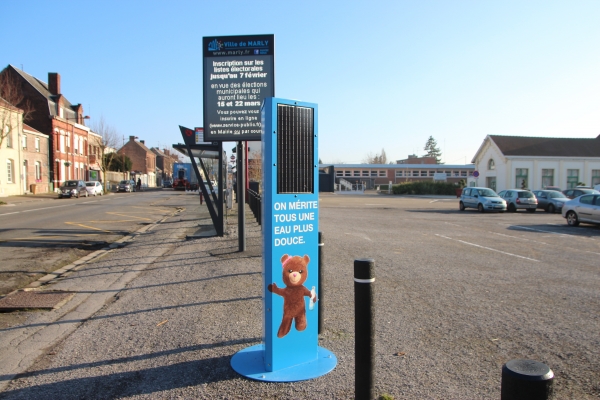 Avez-vous remarqué une borne de couleur bleue installée depuis fin novembre 2019 à l’angle de la place Péri à côté du panneau d'information électronique ?