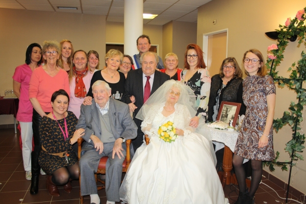Ce mardi 21 janvier après-midi, il régnait une ambiance de fête à l'EHPAD les Magnolias et pour cause ! Anny et Marcel PARMENTIER, résidents de l'établissement, célébraient en grande pompe leurs noces de Palissandre : 65 ans de vie commune !