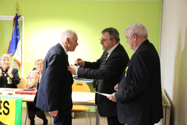 Ce dimanche 26 janvier a eu lieu l’Assemblée Générale de la 1297ème section des Médaillés Militaires à la Maison de Quartier de La Briquette. Ce fut l’occasion pour le Président de la section, Régis DELABASSERUE, et Monsieur Jacques GARET, Président de l’Union départementale des Médaillés Militaires, de remettre des médailles d’or, d’argent, de vermeille et de bronze ainsi que des diplômes aux membres détenant une médaille depuis plus de 25 ans. Deux Marlysiens ont ainsi obtenu la médaille d’or : Monsieur LOTIN Jean et Monsieur GUERLEZ Edmond.