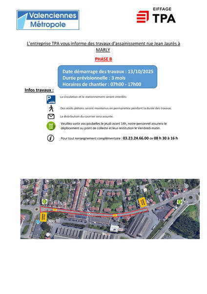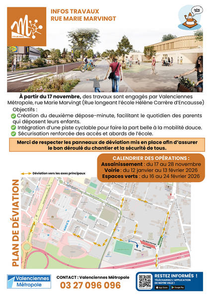 À partir du 17 novembre, des travaux sont engagés par Valenciennes Métropole, rue Marie Marvingt (Rue longeant l’école Hélène Carrère d’Encausse).